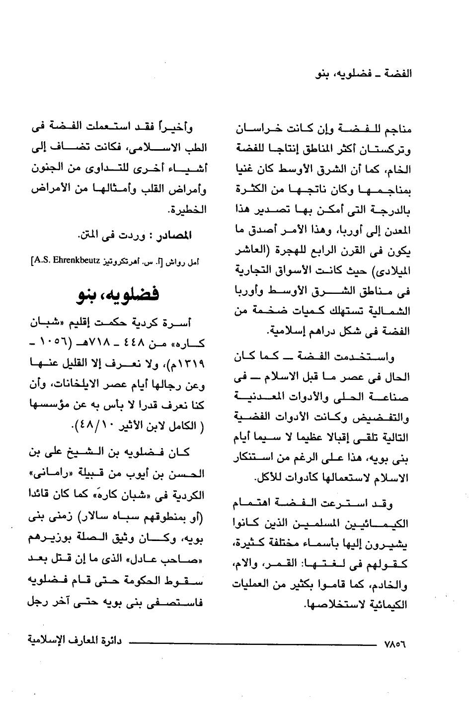 وقد استرعت الفضة اهتمام الكيمائيين المسلمين الذين كانوا يشيرون إليها بأسماء مختلفة كثيرة، كقولهم فى لغتها: القمر، والام، والخادم، كما قاموا بكثير من العمليات الكيمائية لاستخلاصها.