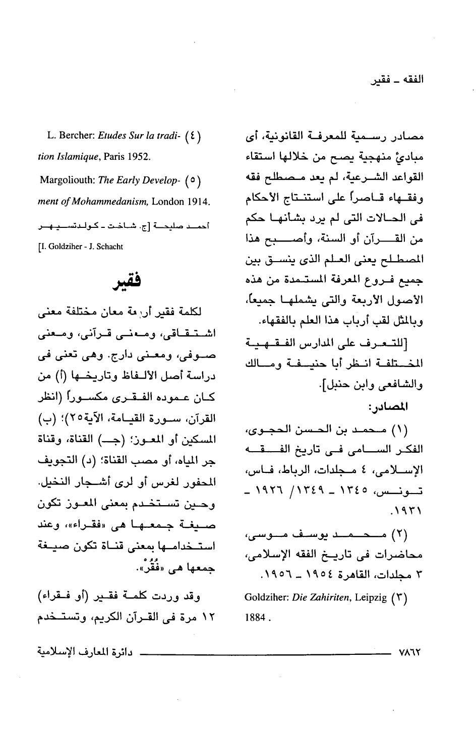 (4) L. Bercher: Etudes Sur la tradition Islamique, Paris 1952