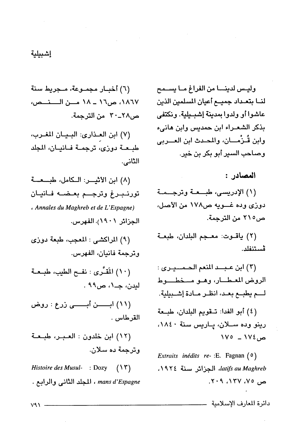 (7) ابن العِذارى: البيان المغرب، طبعة دوزى، ترجمة فانيان، المجلد الثانى.