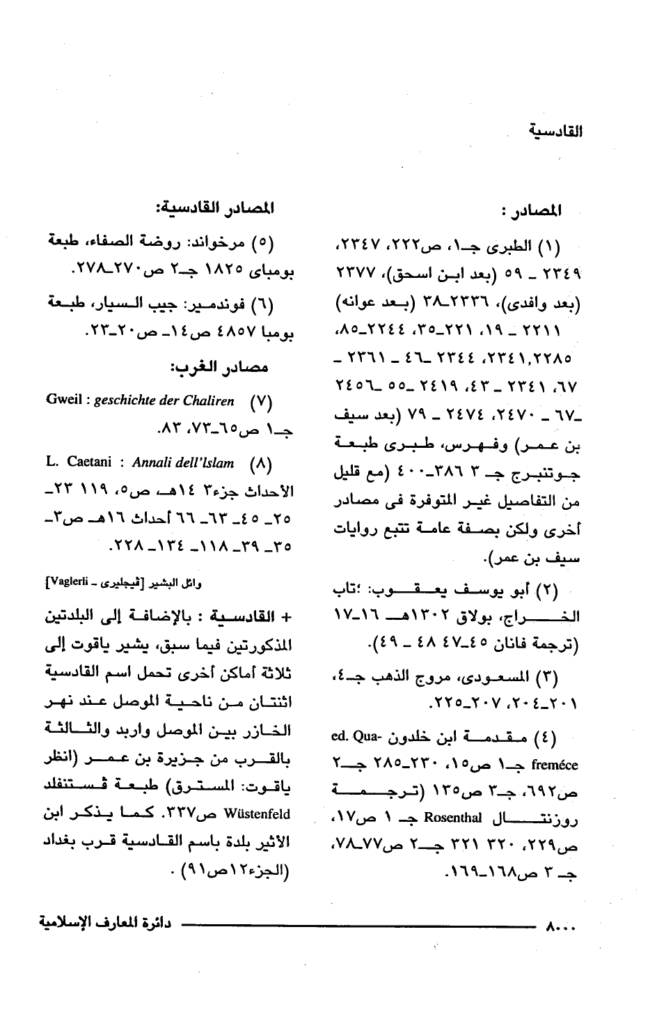 (8) L. Caetani: Annali dell'lslam الأحداث جزء 3 - 14 هـ، ص 5، 119 - 23 - 25 - 45 - 63 - 66 أحداث 16 هـ ص 3 - 35 - 39 - 118 - 134 - 228.