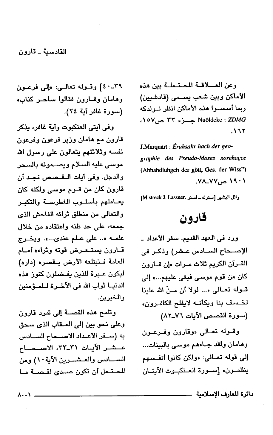ورد فى العهد القديم. سفر الأعداد - الإصحاح السادس عشر) وذكر القرآن الكريم ثلاث مرات {إِنَّ قَارُونَ كَانَ مِنْ قَوْمِ مُوسَى فَبَغَى عَلَيْهِمْ. . .} إلى قوله تعالى {. . .لَوْلَا أَنْ مَنَّ اللَّهُ عَلَيْنَا لَخَسَفَ بِنَا وَيْكَأَنَّهُ لَا يُفْلِحُ الْكَافِرُونَ} (سورة القصص الآيات 76 - 82).