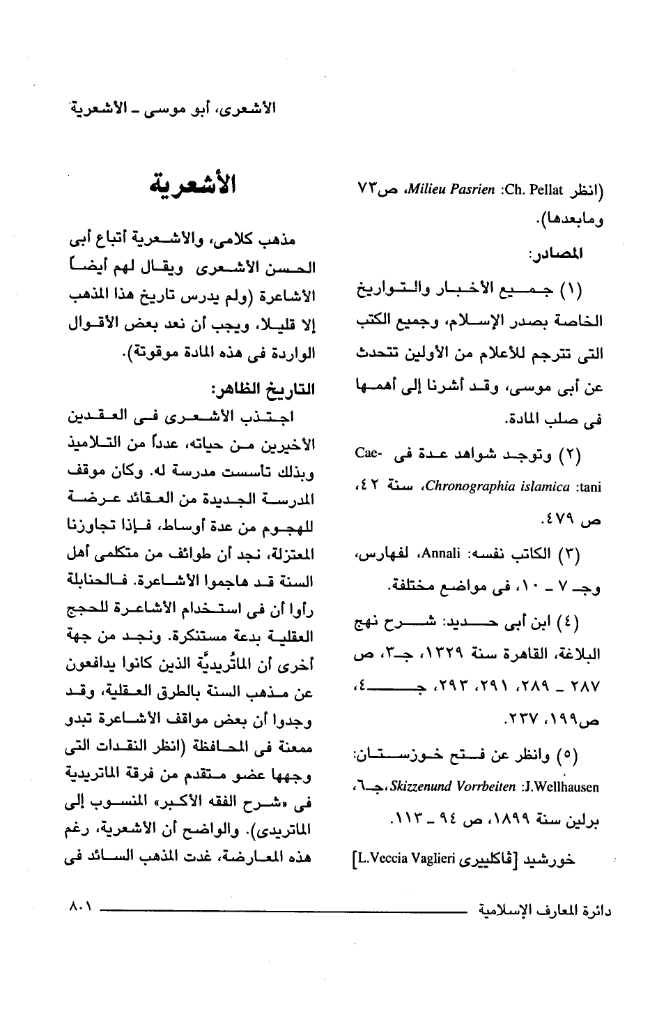 مذهب كلامى، والأشعرية أتباع أبى الحسن الأشعرى ويقال لهم أيضًا الأشاعرة (ولم يدرس تاريخ هذا المذهب إلا قليلا، ويجب أن نعد بعض الأقوال الواردة فى هذه المادة موقوتة).