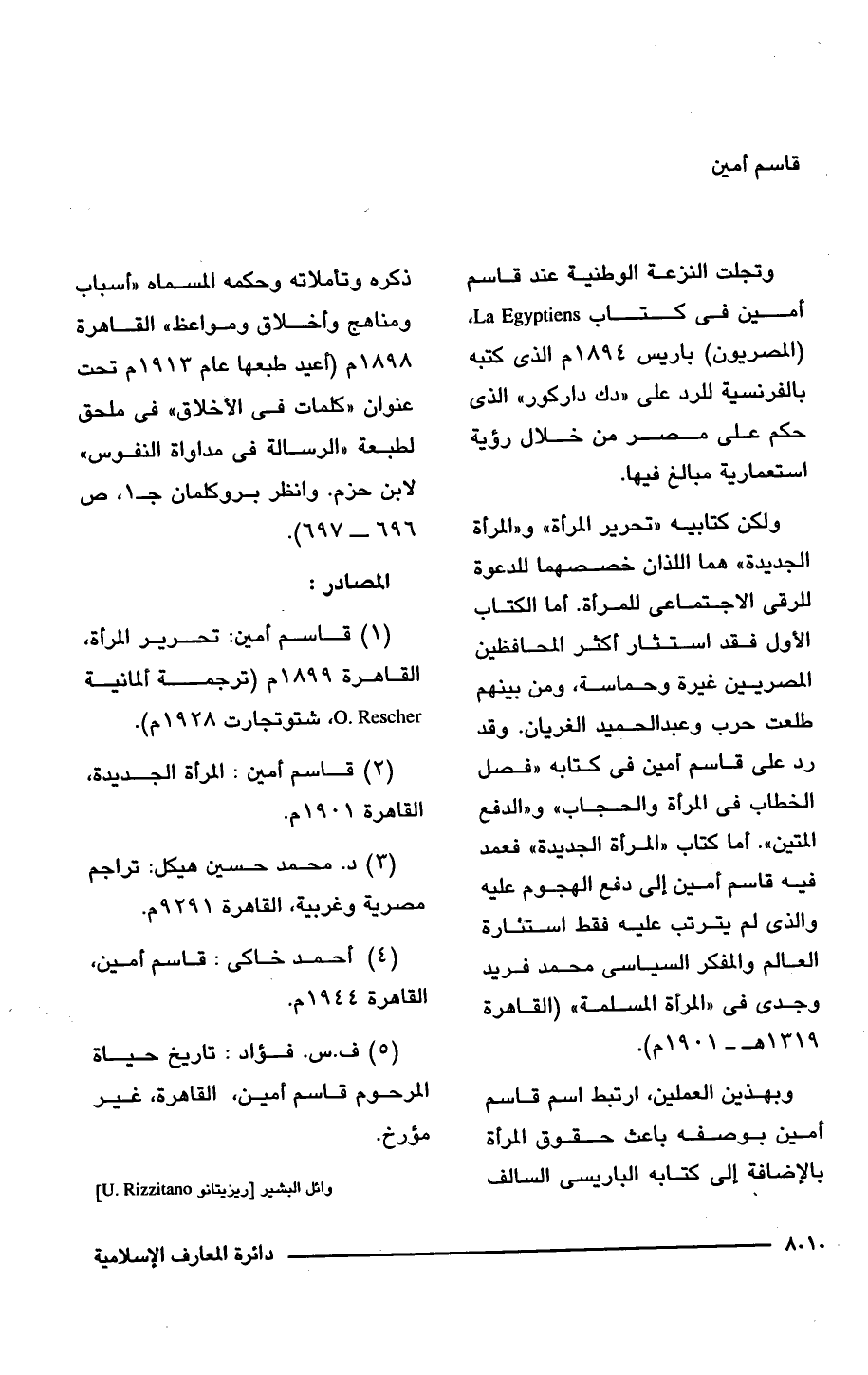 (1) قاسم أمين: تحرير المرأة، القاهرة 1899 م (ترجمة ألمانية O.Rescher، شتوتجارت 1928 م).