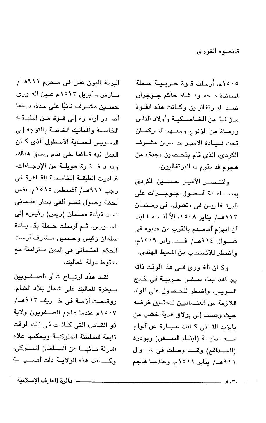 1505 م، أُرسلت قوة حربية حملة لمساندة محمود شاه حاكم جوجران ضد البرتغاليين وكانت هذه القوة مؤلفة من الخاصكية وأولاد الناس ورماة من الزنوج ومعهم التركمان تحت قيادة الأمير حسين مشرف الكردى، الذى قام بتحصين "جدة" من هجوم قد يقوم به البرتغاليون.