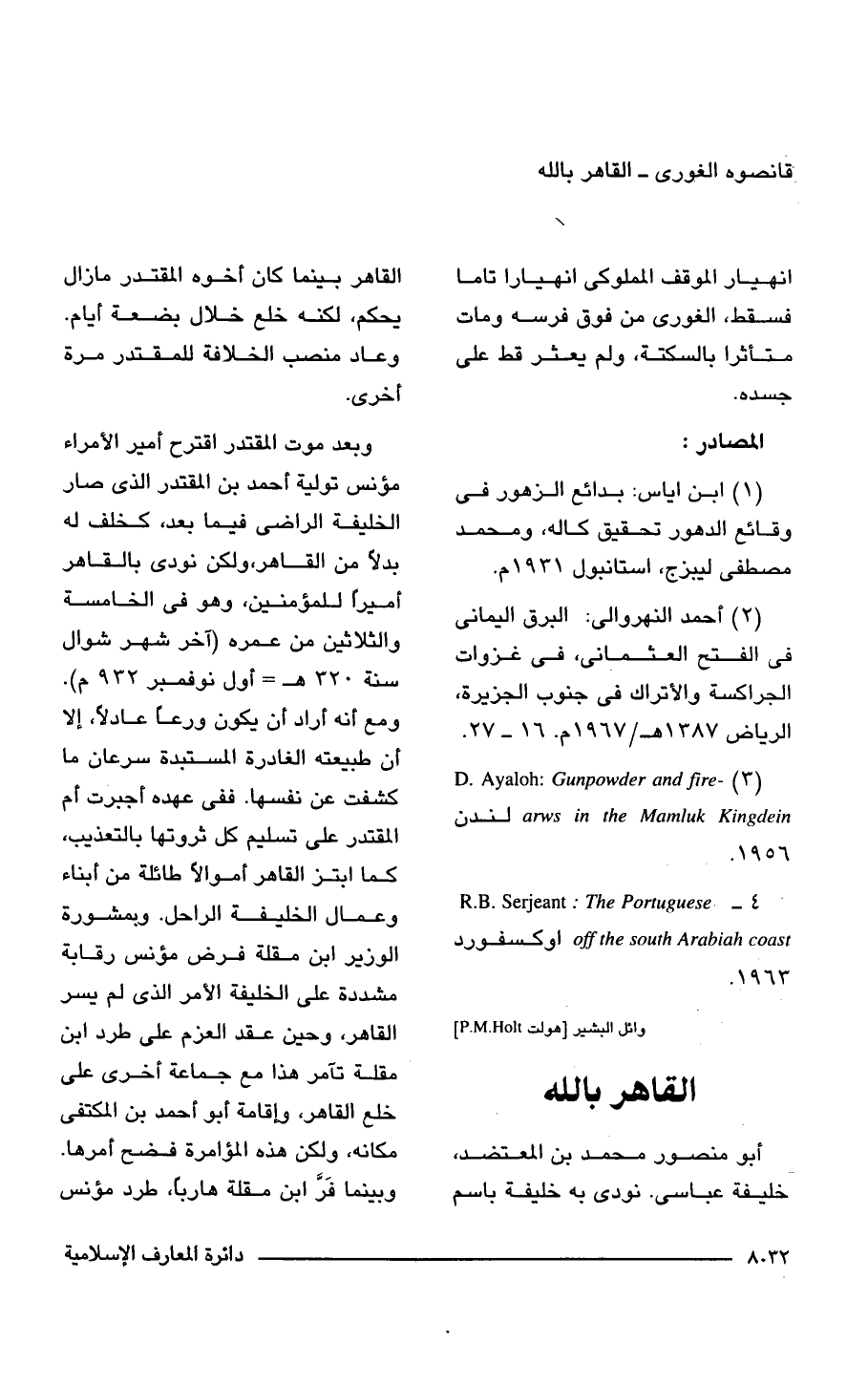 (3) D. Ayaloh: Gunpowder and fire arws in the Mamluk Kingdein لندن 1956.