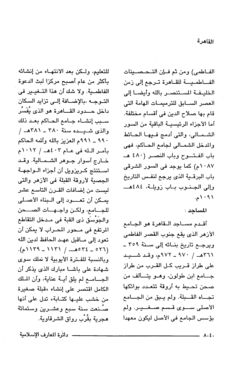 الفاطمى) ومن ثم فإن التحصينات الفاطمية للقاهرة ترجع إلى زمن الخليفة المستنصر باللَّه وأيضا إلى العصر السابق للترميمات الهامة التى قام بها صلاح الدين فى أقسام مختلفة. أما الأجزاء الرئيسية الباقية من السور الشمالى، والتى أدمج فيها الحائط والمدخل الشمالى لجامع الحاكم، فهى باب الفتوح وباب النصر (840 هـ/ 1087 م) كما يوجد فى السور الشرقى باب البرقية الذى يرجع لنفس التاريخ وإلى الجنوب باب زويلة 484 هـ/ 1091 م.