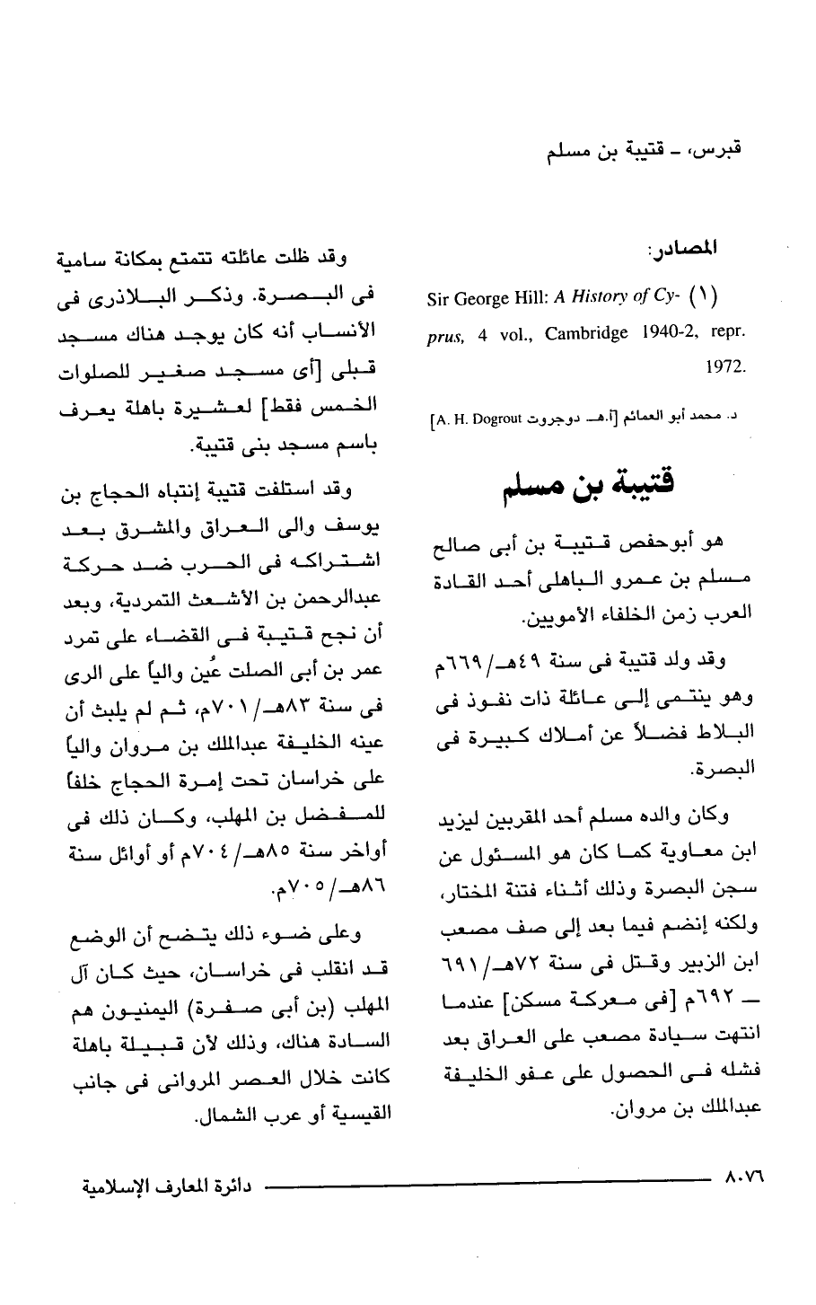 (1) Sir George Hill: A History of Cyprus, 4 vol., Cambridge 1940 - 2, repr. 1972