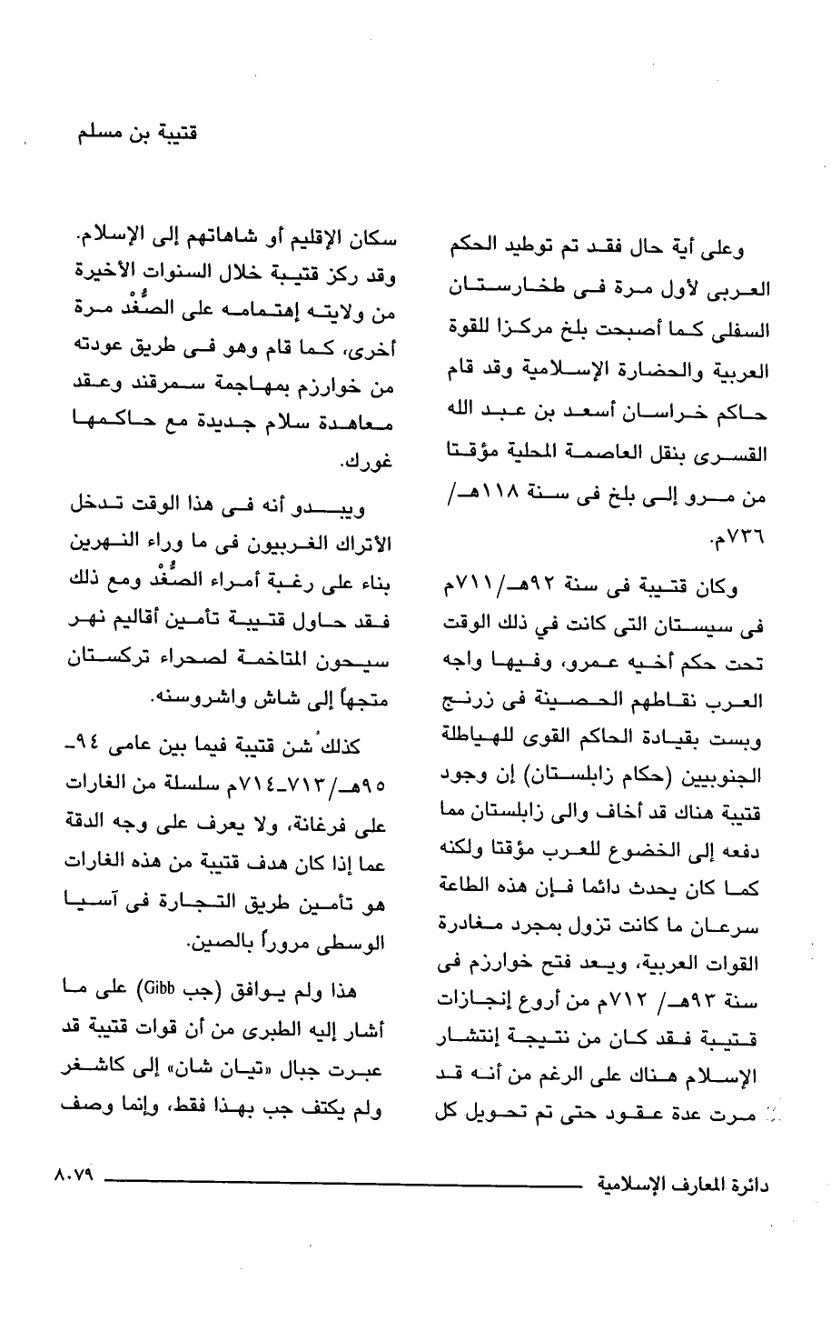 هذا ولم يوافق (جب Gibb) على ما أشار إليه الطبرى من أن قوات قتيبة قد عبرت جبال "تيان شأن" إلى كاشغر ولم يكتف جب بهذا فقط، وإنما وصف