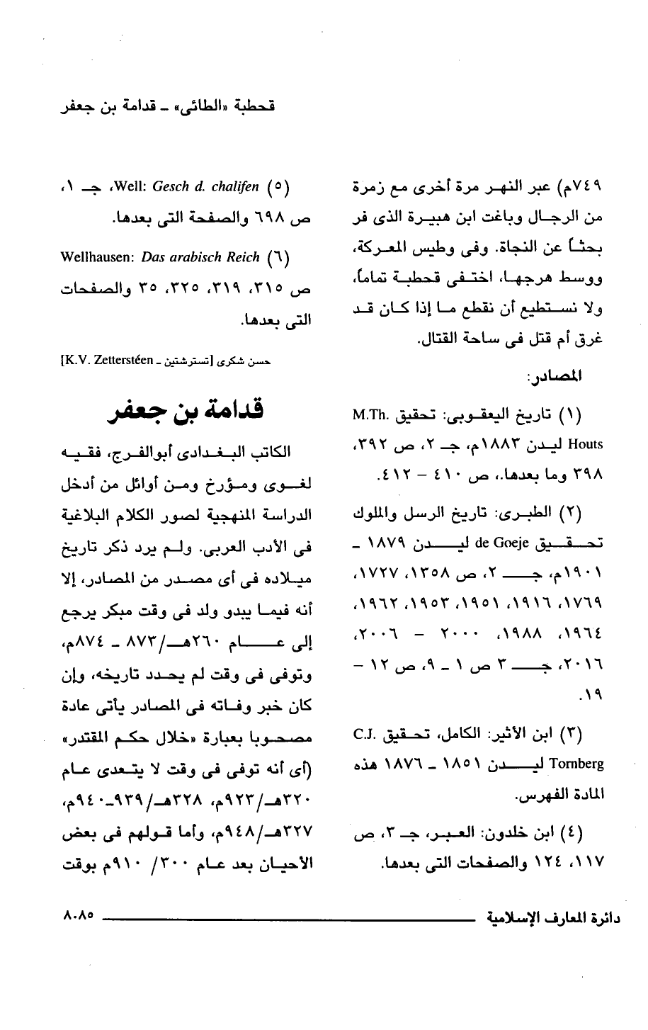 (2) الطبرى: تاريخ الرسل والملوك تحقيق de Goeje ليدن 1879 - 1901 م، جـ 2، ص 1358، 1727، 1769، 1916، 1951، 1953، 1962، 1964، 1988 , 2000 - 2006، 2016، جـ 3 ص 1 - 9 , ص 12 - 19.