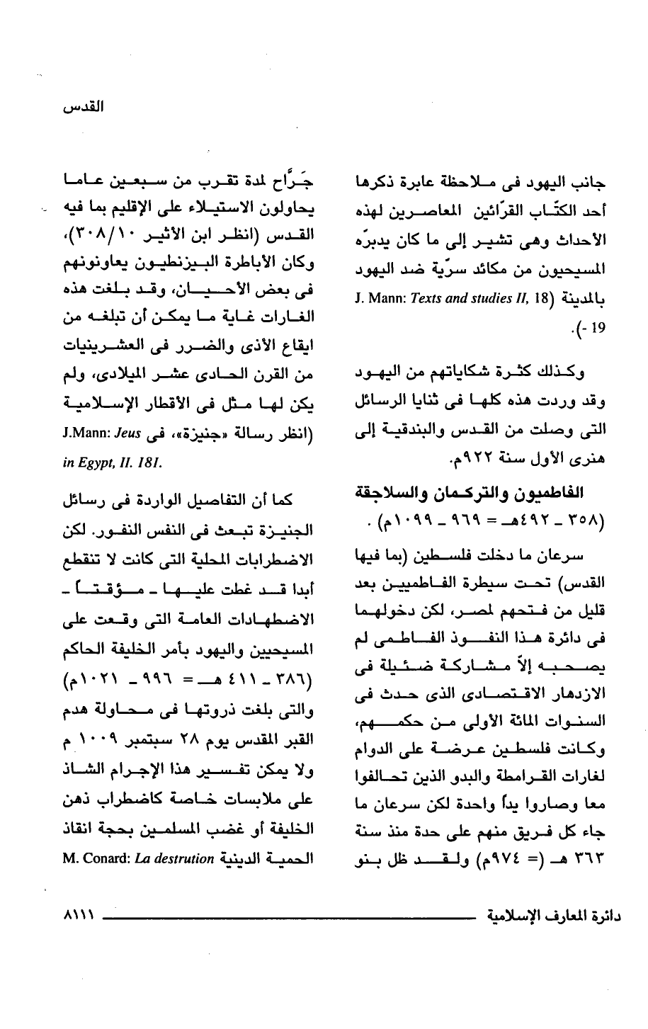 كما أن التفاصيل الواردة فى رسائل الجنيزة تبعث فى النفس النفور. لكن الاضطرابات المحلية التى كانت لا تنقطع أبدا قد غطت عليها -مؤقتًا- الاضطهادات العامة التى وقعت على المسيحيين واليهود بأمر الخليفة الحاكم (386 - 411 هـ = 996 - 1021 م) والتى بلغت ذروتها فى محاولة هدم القبر المقدس يوم 28 سبتمبر 1009 م ولا يمكن تفسير هذا الإجرام الشاذ على ملابسات خاصة كاضطراب ذهن الخليفة أو غضب المسلمين بحجة انقاذ الحمية الدينية M. Cunard: La destrution