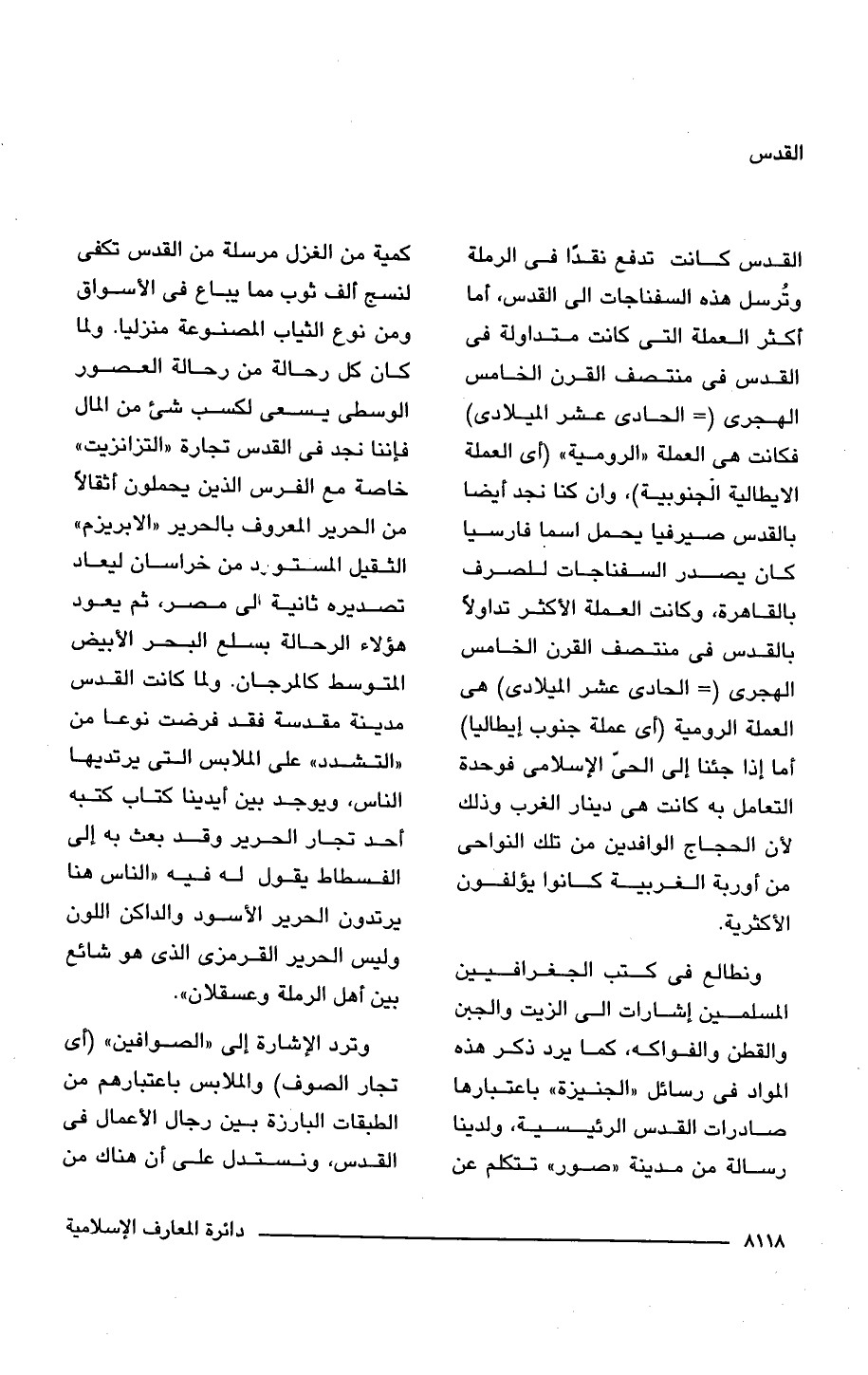 وترد الإشارة إلى "الصوافين" (أى تجار الصوف) والملابس باعتبارهم من الطبقات البارزة بين رجال الأعمال فى القدس، ونستدل على أن هناك من