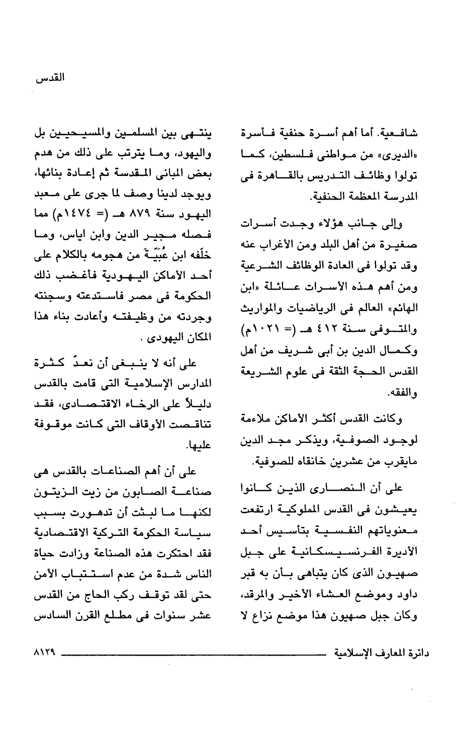 على أنه لا ينبغى أن نعدّ كثرة المدارس الإسلامية التى قامت بالقدس دليلًا على الرخاء الاقتصادى، فقد تناقصت الأوقاف التى كانت موقوفة عليها.