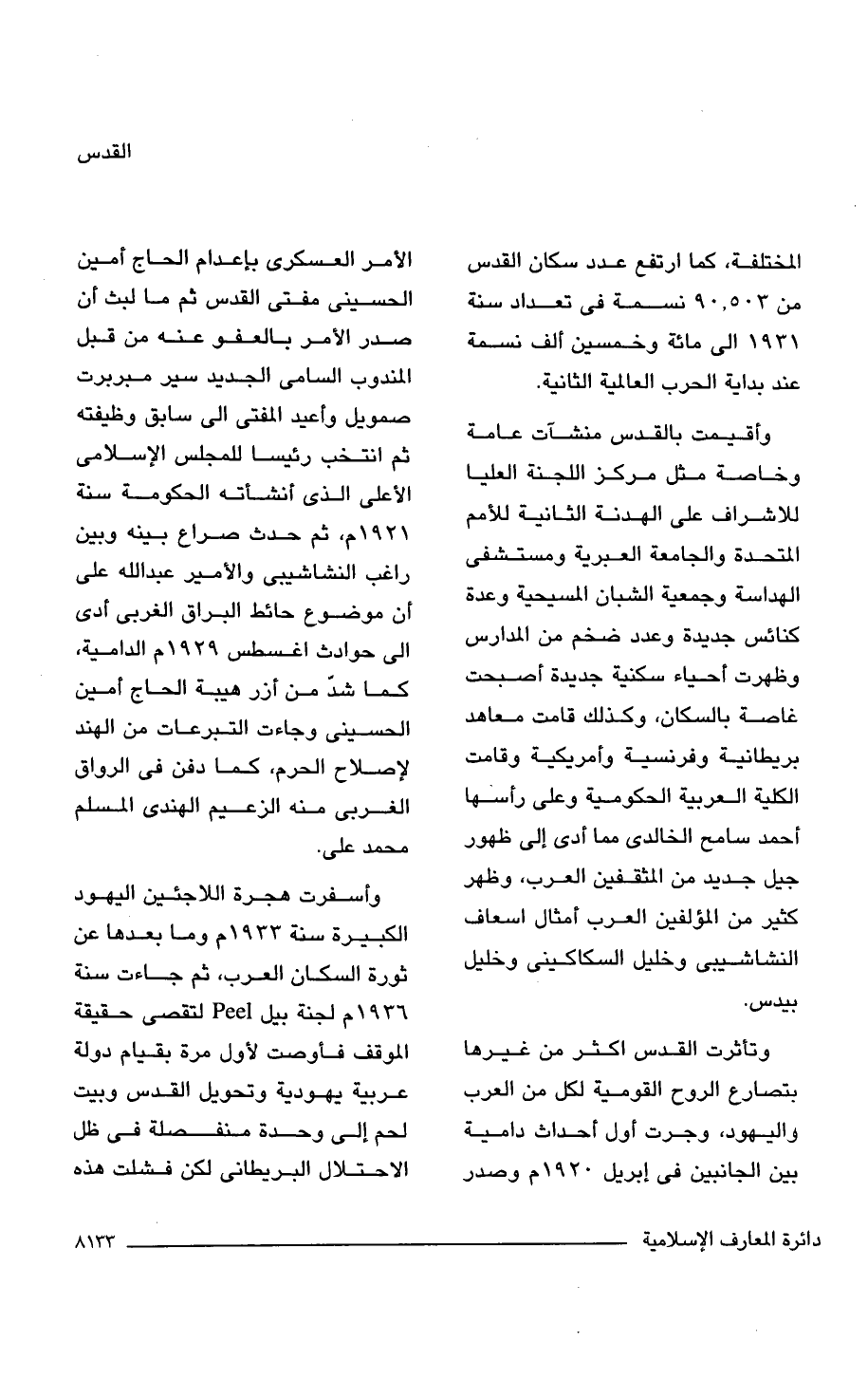 المختلفة، كما ارتفع عدد سكان القدس من 90.503 نسمة فى تعداد سنة 1931 إلى مائة وخمسين ألف نسمة عند بداية الحرب العالمية الثانية.