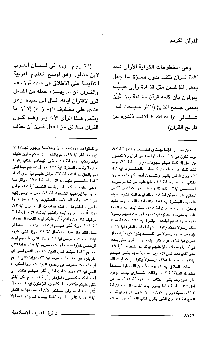 (المترجم: ورد فى لسان العرب لابن منظور وهو أوسع المعاجم العربية التقليدية على الاطلاق فى مادة قرن: ". . والقرآن لمن لم يهمزه جعله من الفعل قرن لاقتران آياته. قال ابن سيده: وهو عندى على تخفيف الهمز. . ") إلا أن ما ينقض هذا الرأى الأخير وهو كون القرآن مشتق من الفعل قرن أن حذف