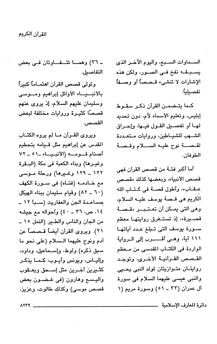 أما أكبر فئة من قصص القرآن فهى قصص الأنبياء، وبعضها كذلك "قصص عقاب"، وأطول قصة فى كتاب اللَّه الَكريم هى قصة يوسف عليه السلام، وهى التى يمكن أن تعتبر "قصة قصيرة"، إذ تستغرق روايتها معظم سورة يوسف التى تبلغ عدد آياتها 111 آية، وهى أقرب إلى الرواية الواردة فى الكتاب المقدسى من معظم القصص القرآنية الأخرى، وتوجد روايتان متوازيتان لمولد النبى يحيى والنبى عيسى عليهما السلام فى سورة آل عمران (33 - 51) وسورة مريم (1 - 36) وهما تتفاوتان فى بعض التفاصيل.
