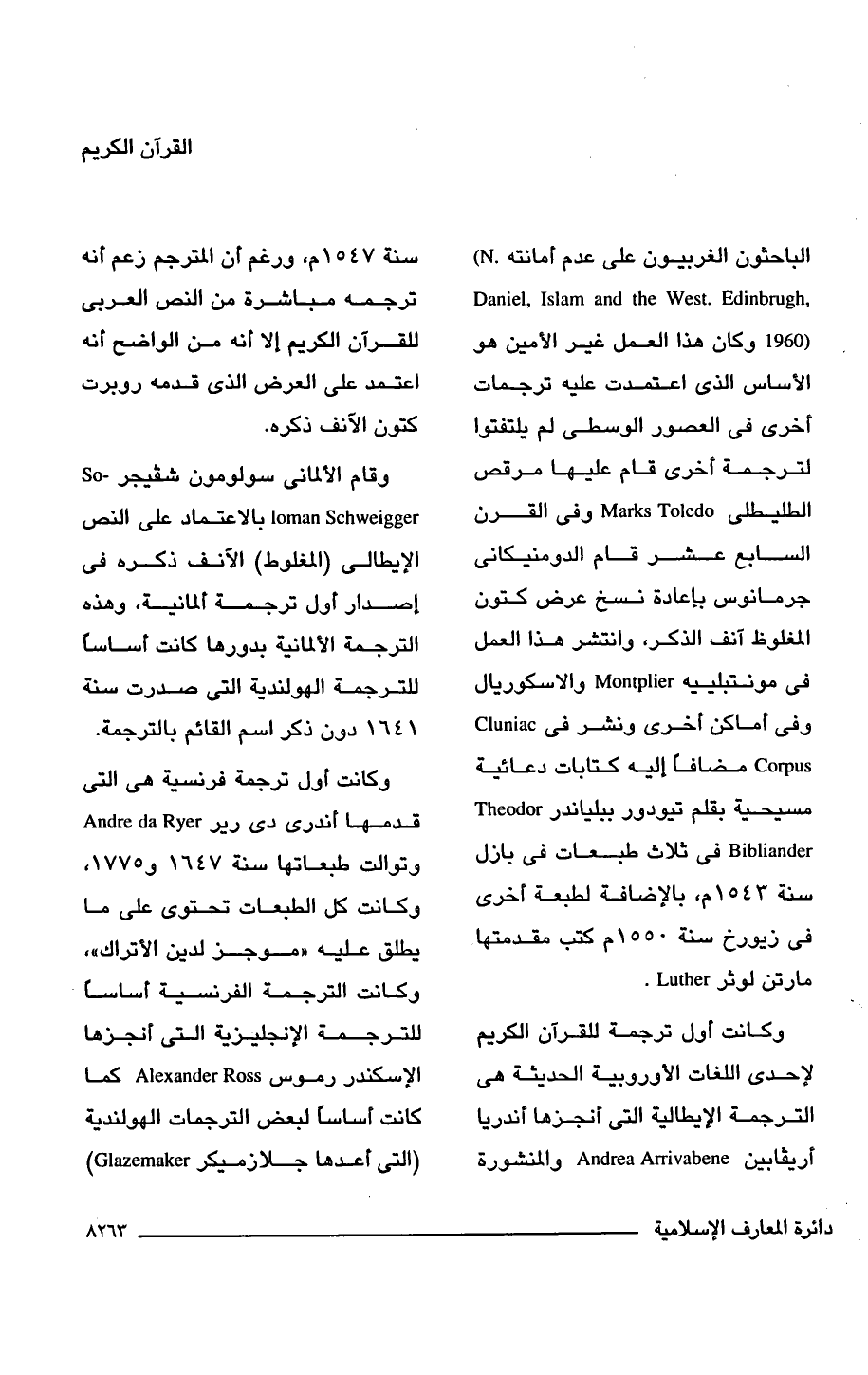 الباحثون الغربيون على عدم أمانته (N. Daniel, Islam and the West. Edinbrugh, 1960) وكان هذا العمل غير الأمين هو الأساس الذى اعتمدت عليه ترجمات أخرى فى العصور الوسطى لم يلتفتوا لترجمة أخرى قام عليها مرقص الطليطلى Marks Toledo وفى القرن السابع عشر قام الدومنيكانى جرمانوس بإعادة نسخ عرض كتون المغلوظ آنف الذكر، وانتشر هذا العمل فى مونتبلييه Montplier والاسكوريال وفى أماكن أخرى ونشر فى Cluniac Corpus مضافًا إليه كتابات دعائية مسيحية بقلم تيودور ببلياندر Theodor Bibliander فى ثلاث طبعات فى بازل سنة 1543 م، بالإضافة لطبعة أخرى فى زيورخ سنة 1550 م كتب مقدمتها مارتن لوثر Luther .