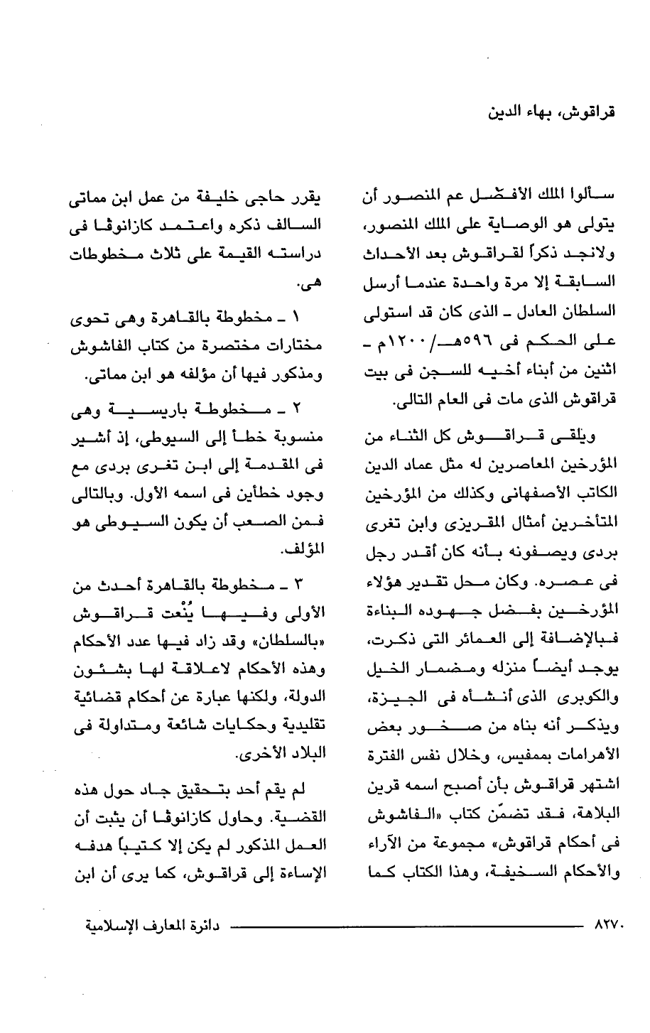 3 - مخطوطة بالقاهرة أحدث من الأولى وفيها يُنْعت قراقوش "بالسلطان" وقد زاد فيها عدد الأحكام وهذه الأحكام لا علاقة لها بشئون الدولة، ولكنها عبارة عن أحكام قضائية تقليدية وحكايات شائعة ومتداولة فى البلاد الأخرى.