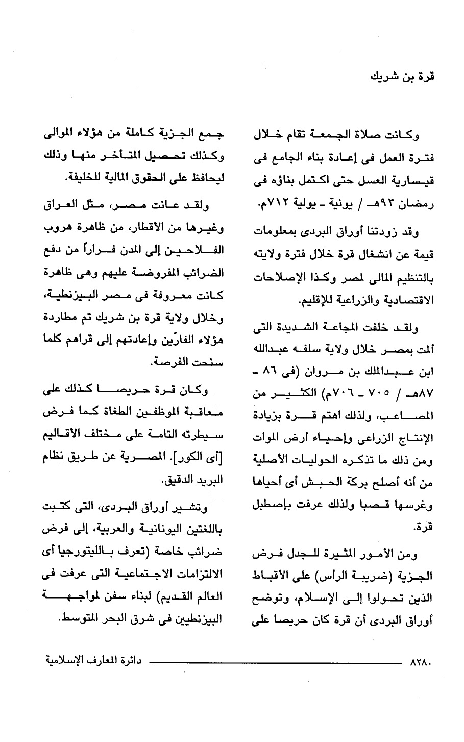 ومن الأمور المثيرة للجدل فرض الجزية (ضريبة الرأس) على الأقباط الذين تحولوا إلى الإسلام، وتوضح أوراق البردى أن قرة كان حريصا على جمع الجزية كاملة من هؤلاء الموالى وكذلك تحصيل المتأخر منها وذلك ليحافظ على الحقوق المالية للخليفة.