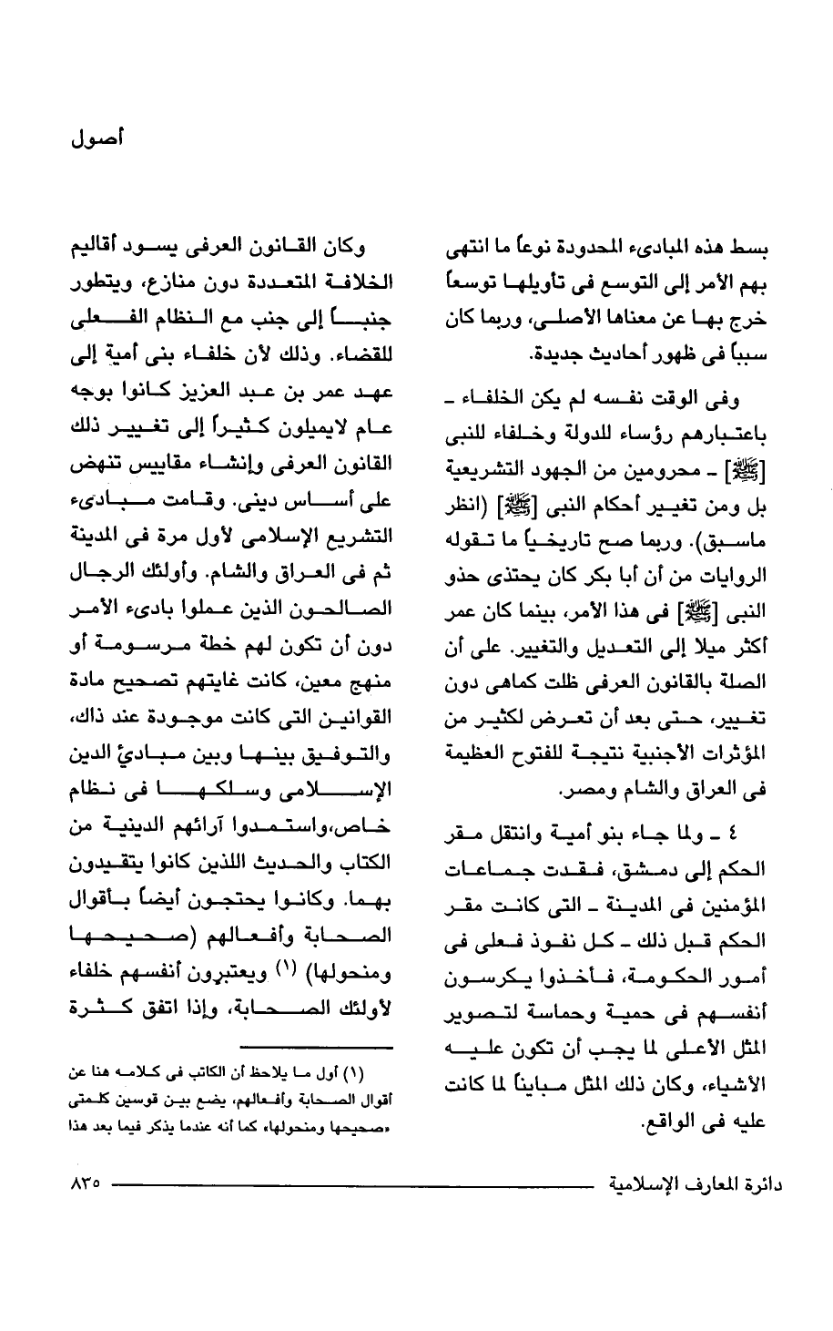 (¬1) أول ما يلاحظ أن الكاتب فى كلامه هنا عن أقوال الصحابة وأفعالهم، يضع بين قوسين كلمتى "صحيحها ومنحولها" كما أنه عندما يذكر فيما بعد هذا