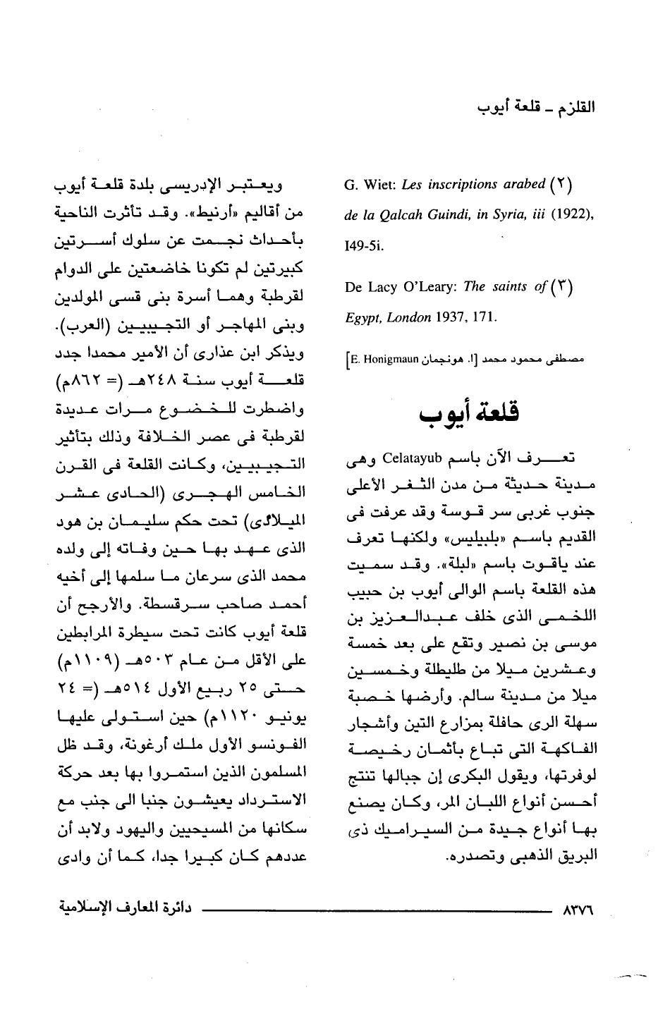 (2) G. Wiet: Les inscriptions arabed de la Qalcah Guindi, in Syria, iii (1922), I 49 - 51