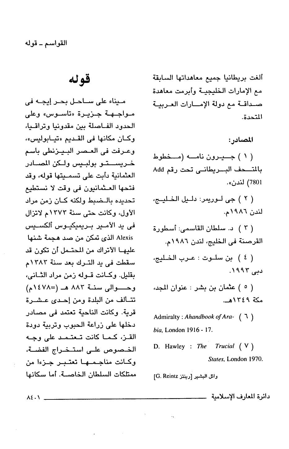 (2) جى لوريمر: دليل الخليج، لندن 1986 م.