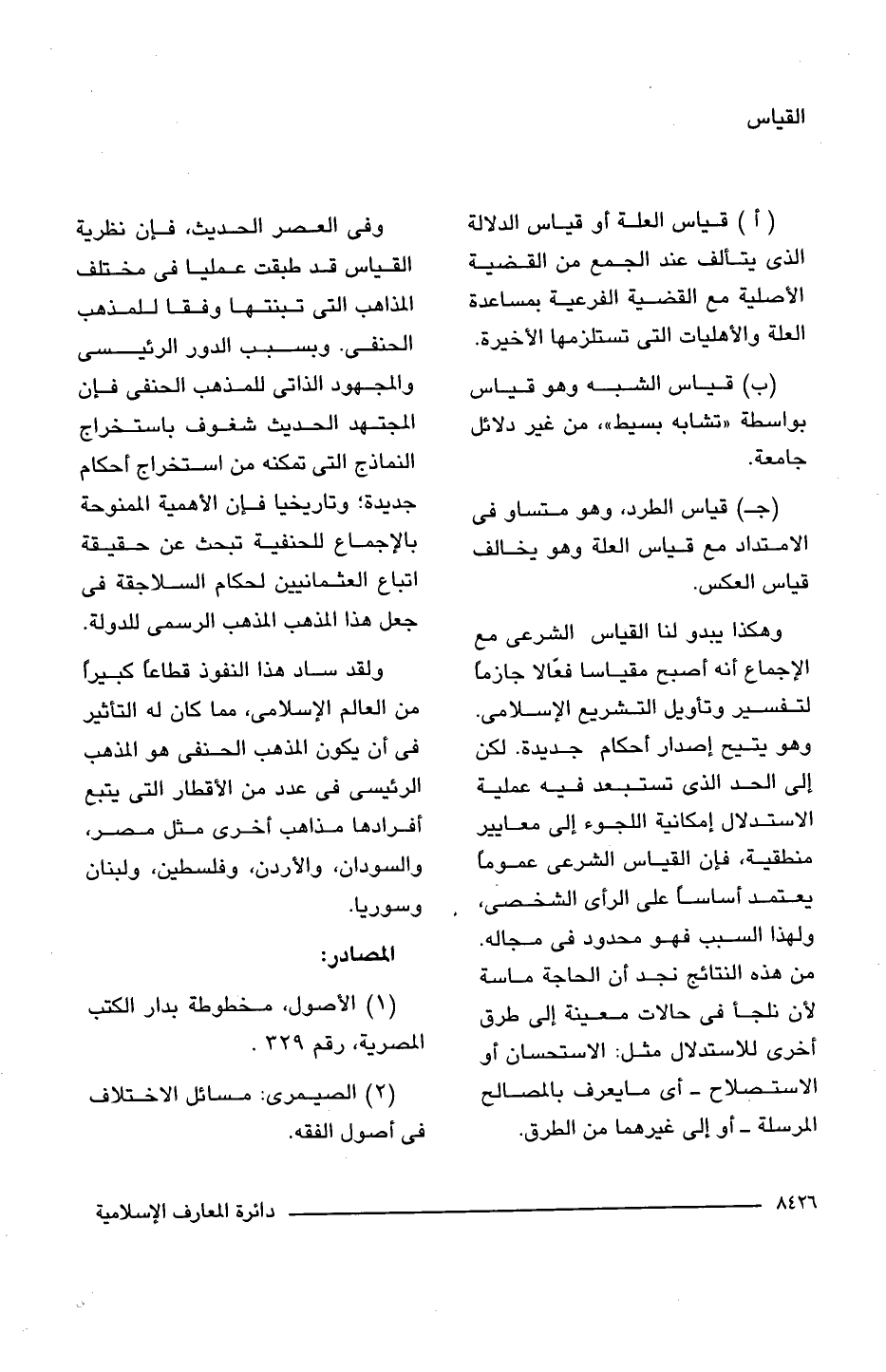 (جـ) قياس الطرد، وهو متساو فى الامتداد مع قياس العلة وهو يخالف قياس العكس.