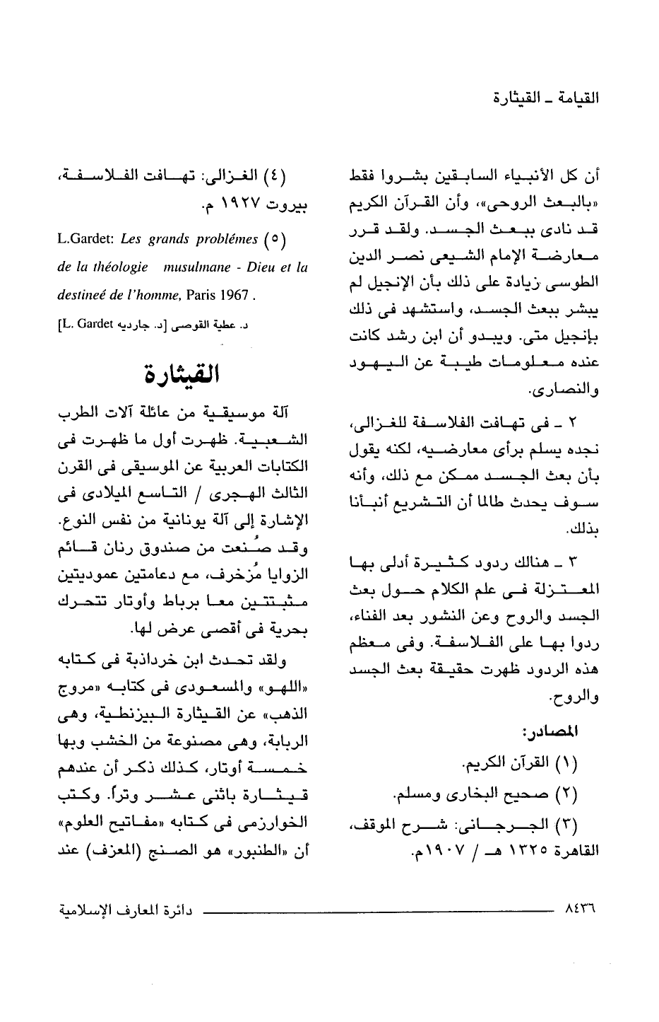 (5) L.Gardet: Les grands problemes theologie niusulruane - Dieu el la de la deslinee de l'homme. Paris 1967