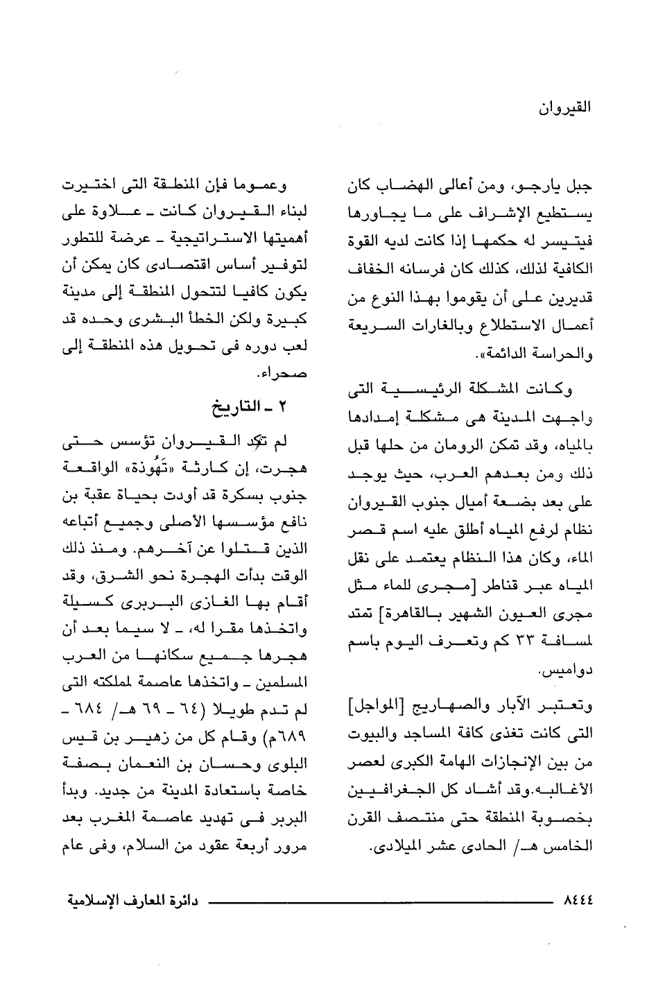 وعموما فإن المنطقة التى اختيرت لبناء القيروان كانت -علاوة على أهميتها الاستراتيجية- عرضة للتطور لتوفير أساس اقتصادى كان يمكن أن يكون كافيا لتتحول المنطقة إلى مدينة كبيرة ولكن الخطأ البشرى وحده قد لعب دوره فى تحويل هذه المنطقة إلى صحراء.