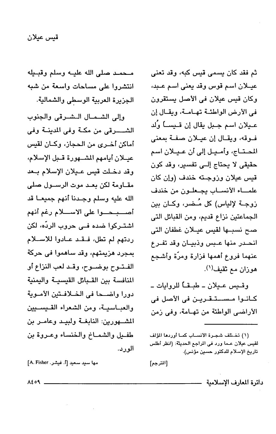 (¬1) تختلف شجرة الأنساب كما أوردها المؤلف لقيس عيلان عما ورد فى الراجع الحديثة: (انظر أطلس تاريخ الإسلام للدكتور حسين مؤنس). [المترجم]