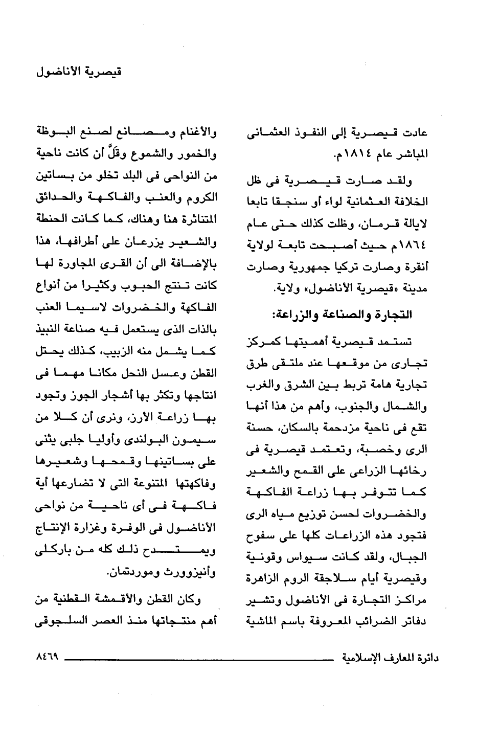 عادت قيصرية إلى النفوذ العثمانى المباشر عام 1814 م.