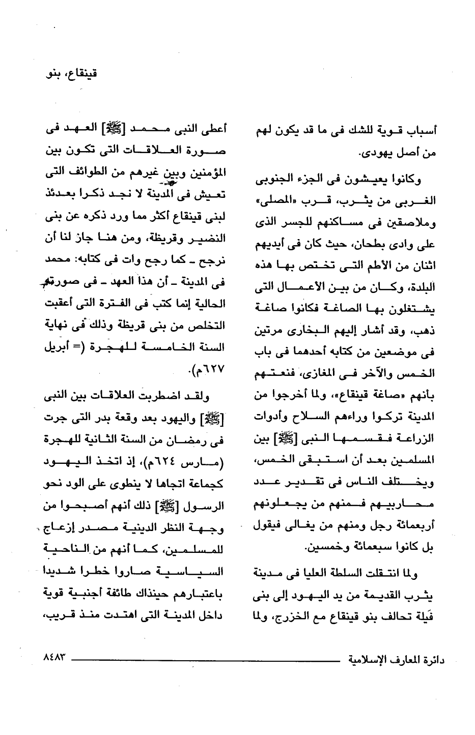 ولقد اضطربت العلاقات بين النبى [-صلى اللَّه عليه وسلم-] واليهود بعد وقعة بدر التى جرت فى رمضان من السنة الثانية للهجرة (مارس 624 م)، إذ اتخذ اليهود كجماعة اتجاها لا ينطوى على الود نحو الرسول [-صلى اللَّه عليه وسلم-] ذلك أنهم أصبحوا من وجهة النظر الدينية مصدر إزعاج للمسلمين، كما أنهم من الناحية السياسية صاروا خطرا شديدا باعتبارهم حينذاك طائفة أجنبية قوية داخل المدينة التى اهتدت منذ قريب،