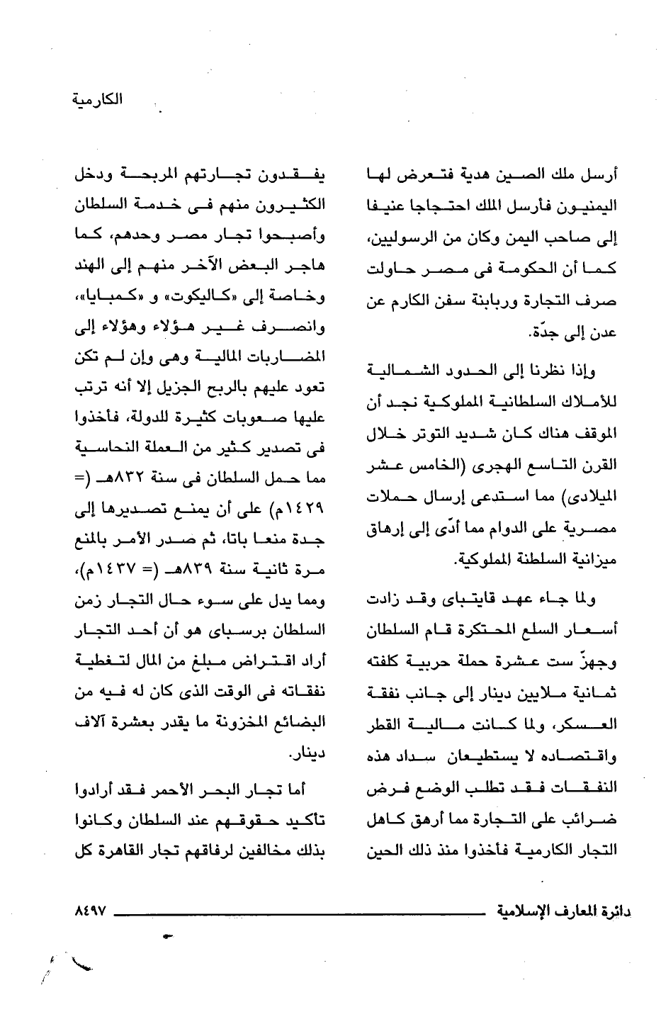 ولما جاء عهد قايتباى وقد زادت أسعار السلع المحتكرة قام السلطان وجهز ست عشرة حملة حربية كلفته ثمانية ملايين دينار إلى جانب نفقة العسكر، ولما كانت مالية القطر واقتصاده لا يستطيعان سداد هذه النفقات فقد تطلب الوضع فرض ضرائب على التجارة مما أرهق كاهل التجار الكارمية فأخذوا منذ ذلك الحين يفقدون تجارتهم المربحة ودخل الكثيرون منهم فى خدمة السلطان وأصبحوا تجار مصر وحدهم، كما هاجر البعض الآخر منهم إلى الهند وخاصة إلى "كاليكوت" و"كمبايا"، وانصرف غير هؤلاء وهؤلاء إلى المضاربات المالية وهى وإن لم تكن تعود عليهم بالربح الجزيل إلا أنه ترتب عليها صعوبات كثيرة للدولة، فأخذوا فى تصدير كثير من العملة النحاسية مما حمل السلطان فى سنة 832 هـ (= 1429 م) على أن يمنع تصديرها إلى جدة منعًا باتًا، ثم صدر الأمر بالمنع مرة ثانية سنة 839 هـ (= 1437 م)، ومما يدل على سوء حال التجار زمن السلطان برسباى هو أن أحد التجار أراد اقتراض مبلغ من المال لتغطية نفقاته فى الوقت الذى كان له فيه من البضائع المخزونة ما يقدر بعشرة آلاف دينار.