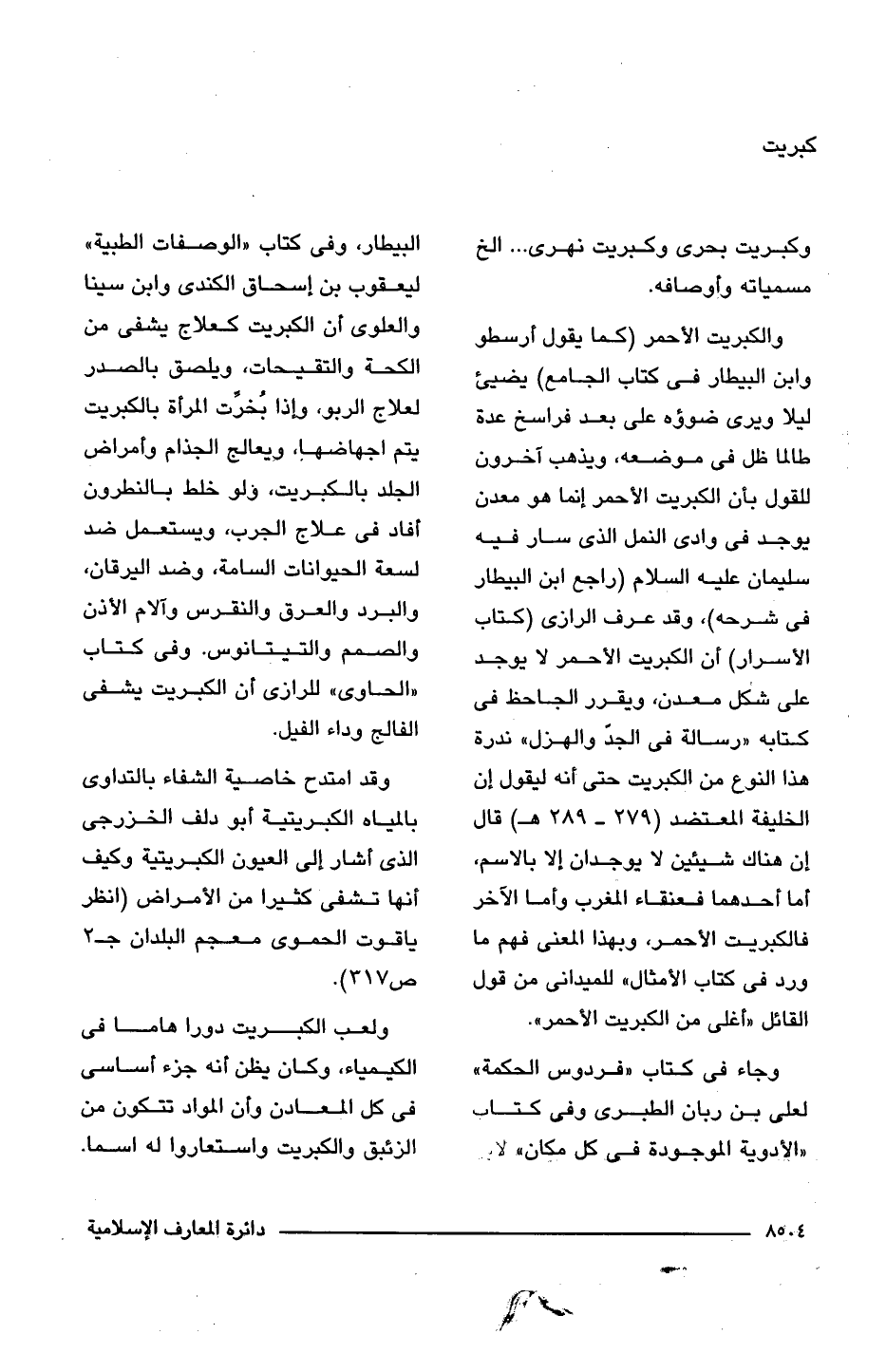 وكبريت بحرى وكبريت نهرى. . . الخ مسمياته وأوصافه.