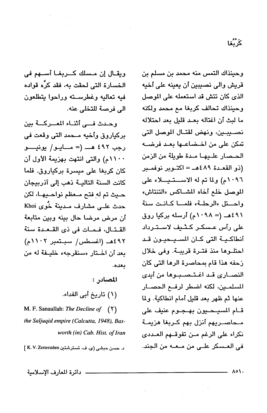(2) M. F. Sanaullah: The Decline of the Saljugid empire (Calcutta, 1948), Basworth (in) Cab. Hist. of Iran