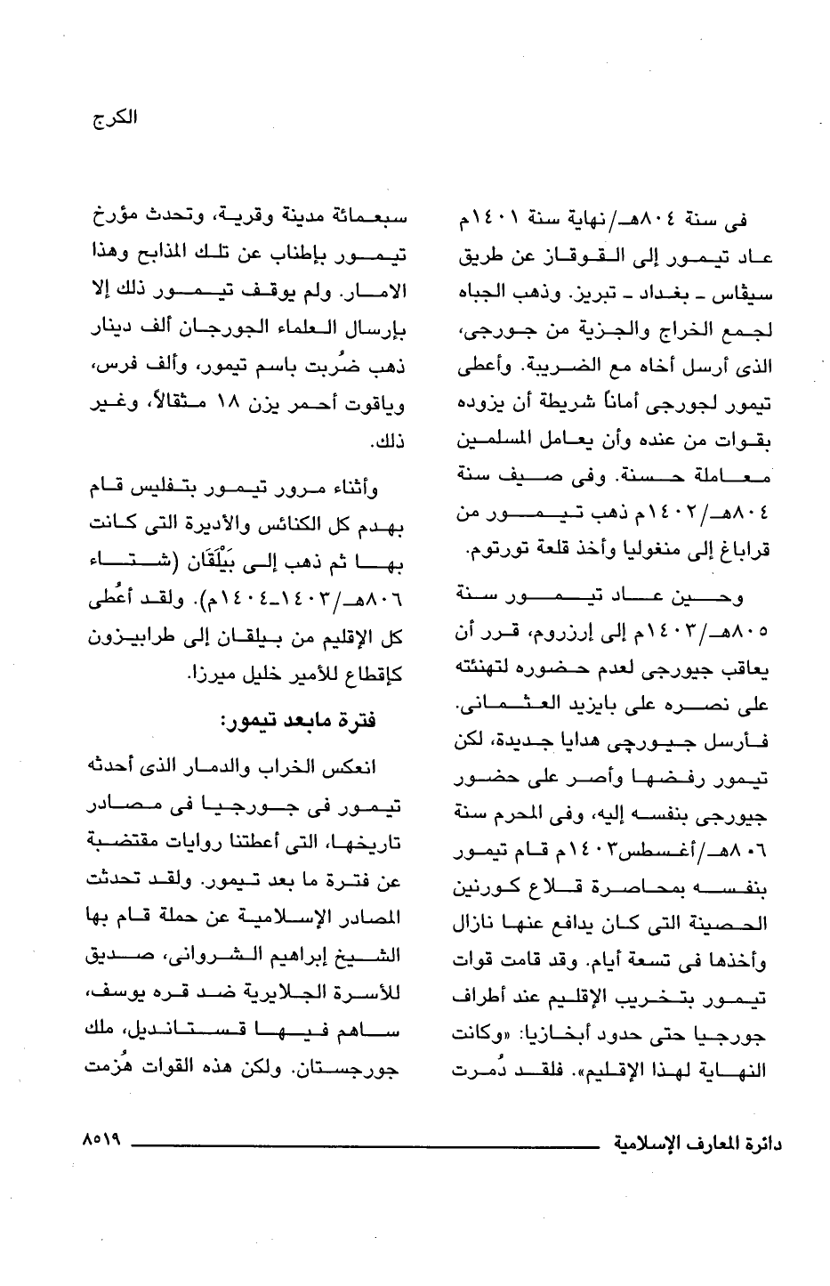 فى سنة 804 هـ/ نهاية سنة 1401 م عاد تيمور إلى القوقاز عن طريق سيفاس -بغداد- تبريز. وذهب الجباه لجمع الخراج والجزية من جورجى، الذى أرسل أخاه مع الضريبة. وأعطى تيمور لجورجى أمانًا شريطة أن يزود بقوات من عنده وأن يعامل المسلمين معاملة حسنة. وفى صيف سنة 804 هـ/ 1402 م ذهب تيمور من قراباغ إلى منغوليا وأخذ قلعة تورتوم.