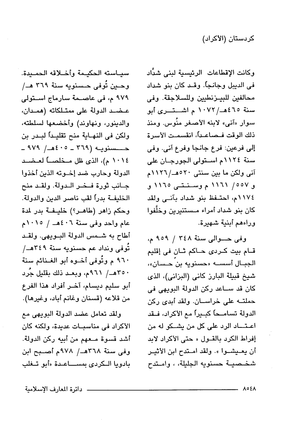 وفى حوالى سنة 348/ 959 م، قام بيت كردى حاكم ثانٍ فى إقليم الجبال أسسه "حسنويه بن حسان"، شيخ قبيلة البارز كانى (البزانى)، الذى كان قد ساعد ركن الدولة البويهى فى حملته على خراسان. ولقد أبدى ركن الدولة تسامحًا كبيرًا مع الأكراد، فقد اعتاد الرد على كل من يشكو له من إفراط الكرد بالقول "حتى الأكراد لابد أن يعيشوا". ولقد امتدح ابن الأثير شخصية حسنويه الجليلة، ، وامتدح سياسته الحكيمة وأخلاقه الحميدة. وحين توفى حسنويه سنة 369 هـ/ 979 م، فى عاصمة سارماج استولى عضد الدولة على ممتلكاته (همدان, والدينور، ونهاوند) وأخضعها لسلطته، ولكن فى النهاية منح تقليدًا لبدر بن حسنويه (369 - 405 هـ/ 979 - 1014 م)، الذى ظل مخلصا لعضد الدولة وحارب ضد إخوته الذين أخذوا جانب ثورة فخر الدولة. ولقد منح الخليفة بدر، لقب ناصر الدين والدولة. وحكم زاهر (طاهر؟ ) خليفة بدر لمدة عام واحد وفى سنة 406 هـ/ 1015 م أطاح به شمس الدولة البويهى. ولقد تُوفى ونداد عم حسنويه سنة 349 هـ/ 960 م وتُوفى أخوه أبو الغنائم سنة 350 هـ/ 961 م، وبعد ذلك بقليل جُرد أبو سليم ديسام، آخر أفراد هذا الفرع من قلاعه (قسنان وغانم أباد, وغيرها).