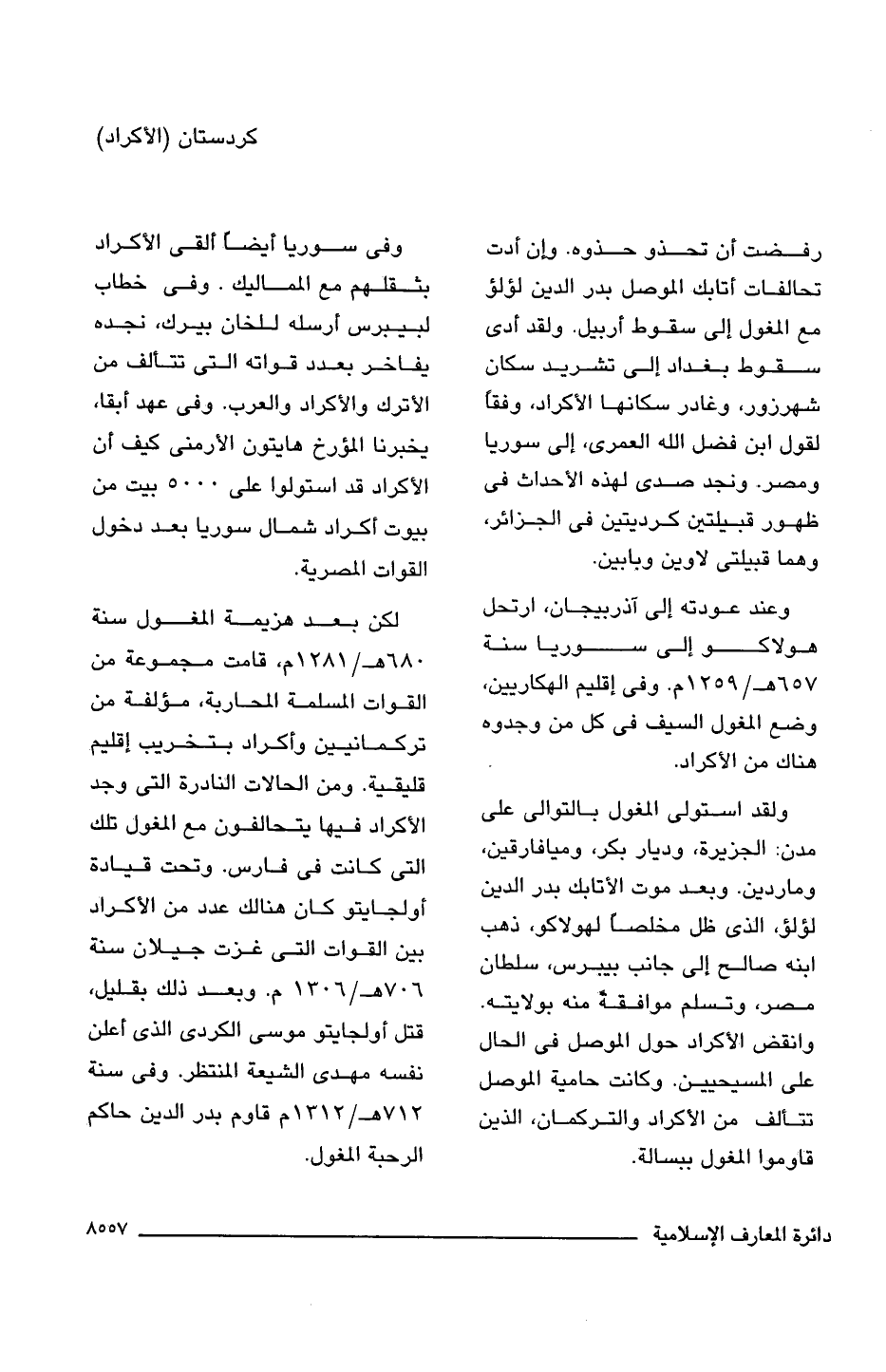 وعند عودته إلى آذربيجان، ارتحل هولاكو إلى سوريا سنة 657 هـ/ 1259 م. وفى إقليم الهكاريين، وضع المغول السيف فى كل من وجدوه هناك من الأكراد.