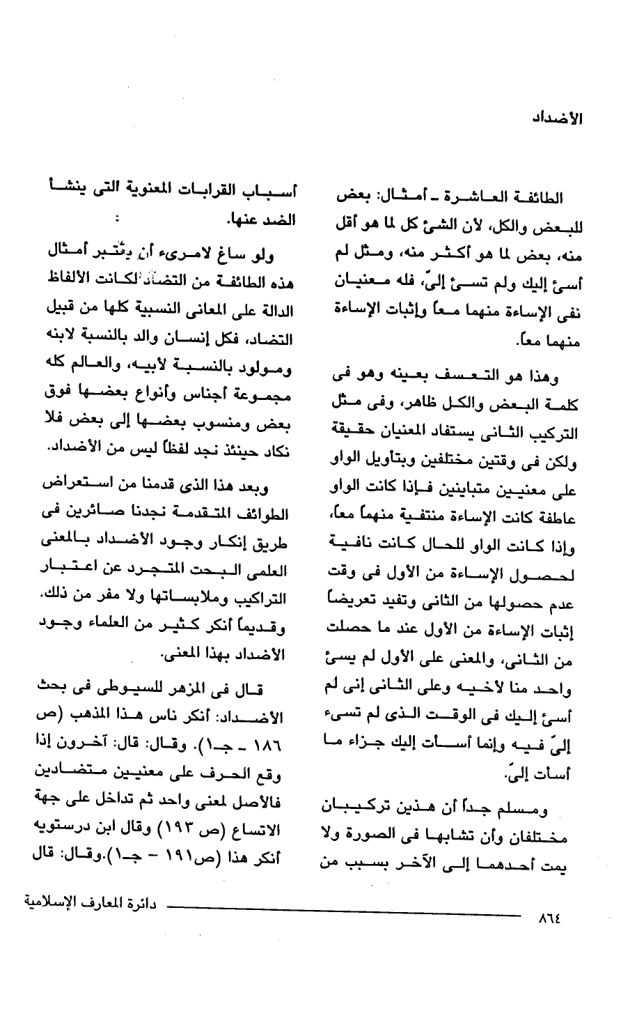 ولو ساغ لامرئ أن يعتبر أمثال هذه الطائفة من التضاد لكانت الألفاظ الدالة على المعانى النسبيه كلها من قبيل التضاد، فكل إنسان والد بالنسبة لابنه ومولود بالنسبة لأبيه، والعالم كله مجموعة أجناس وأنواع بعضها فوق بعض ومنسوب بعضها إلى بعض فلا نكاد حينئذ نجد لفظًا ليس من الأضداد.