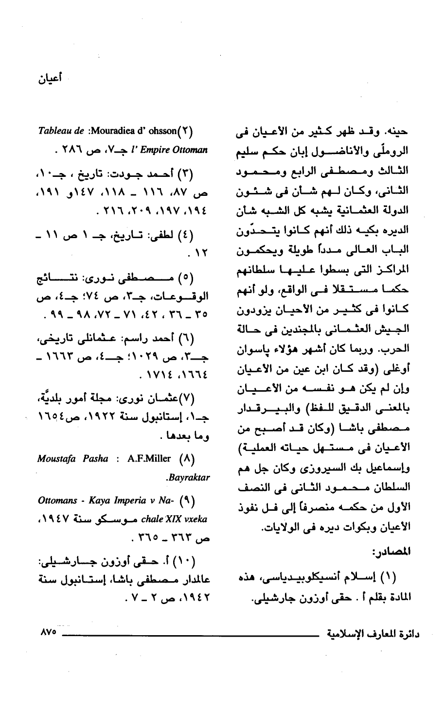 (10) أ. حقى أوزون جارشيلى: عالمدار مصطفى باشا، إستانبول سنة 1942، ص 2 - 7.