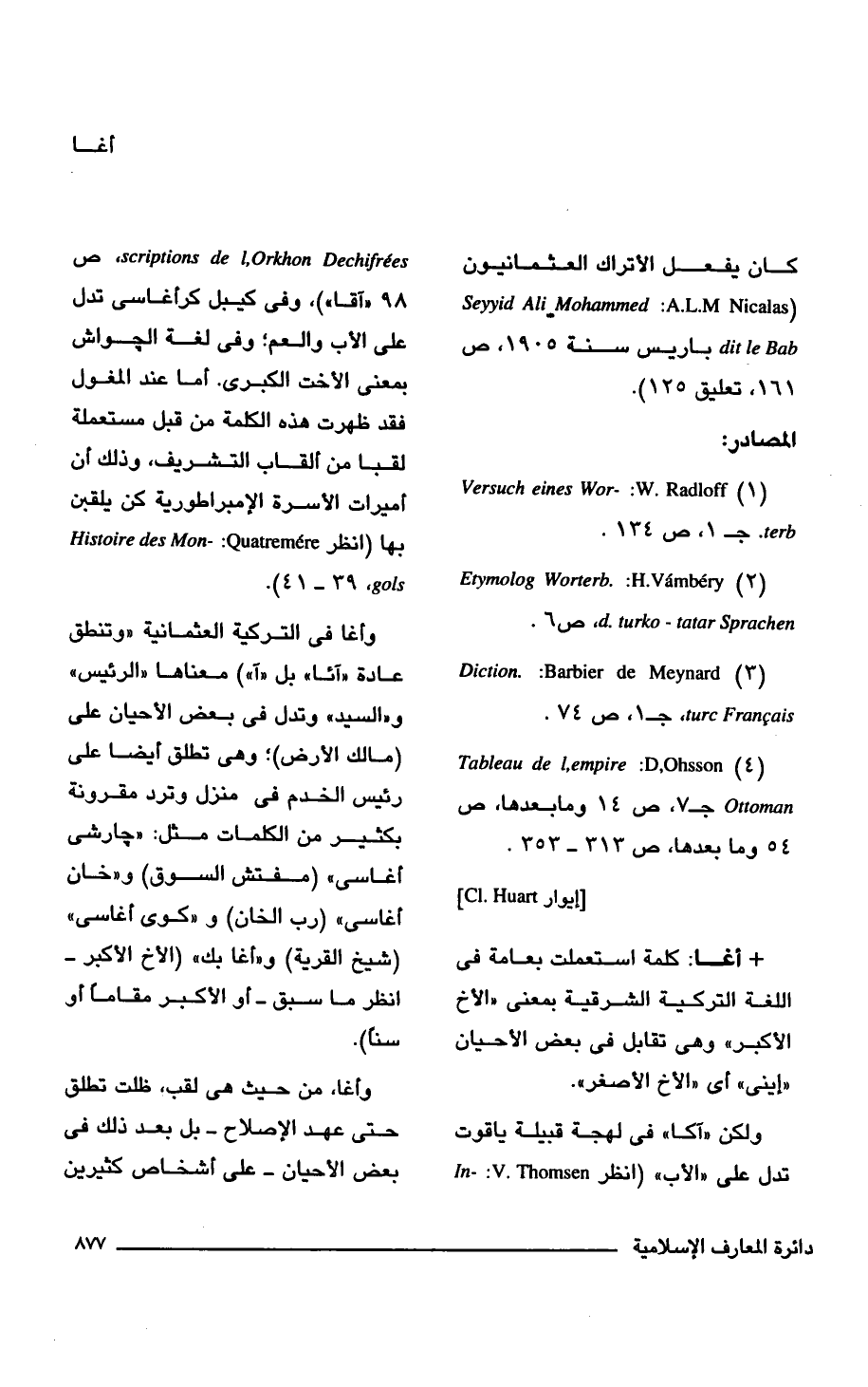 + أغا: كلمة استعملت بعامة فى اللغة التركية الشرقية بمعنى "الأخ الأكبر" وهى تقابل فى بعض الأحيان "إينى" أى "الأخ الأصغر".