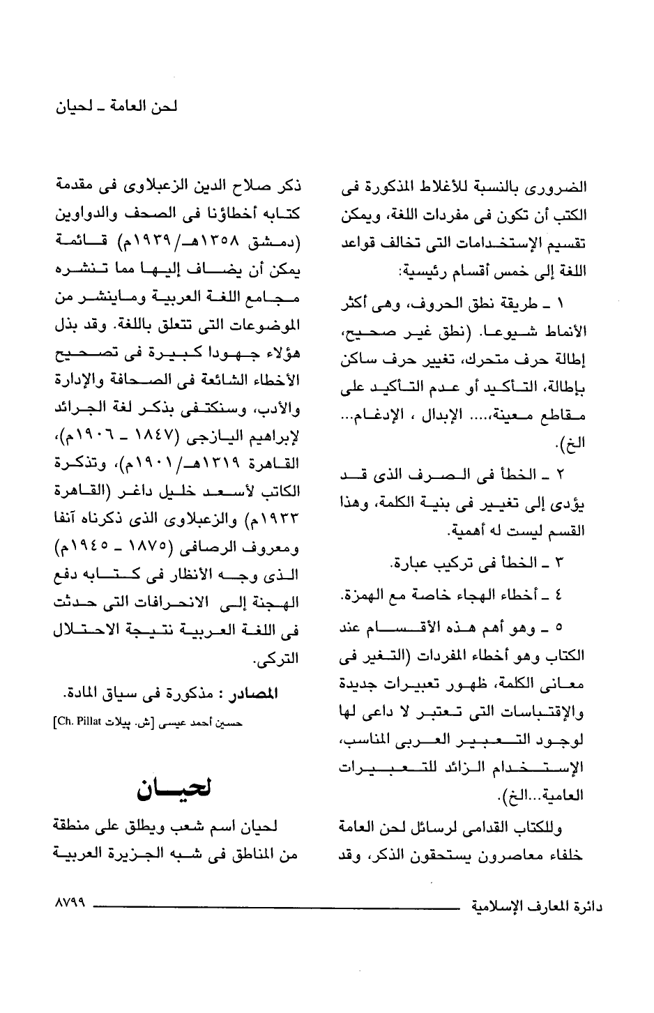 وللكتاب القدامى لرسائل لحن العامة خلفاء معاصرون يستحقون الذكر، وقد ذكر صلاح الدين الزعبلاوى فى مقدمة كتابه أخطاؤنا فى الصحف والدواوين (دمشق 1358 هـ/ 1939 م) قائمة يمكن أن يضاف إليها مما تنشره مجامع اللغة العربية وما ينشر من الموضوعات التى تتعلق باللغة. وقد بذل هؤلاء جهودا كبيرة فى تصحيح الأخطاء الشائعة فى الصحافة والإدارة والأدب، وسنكتفى بذكر لغة الجرائد لإبراهيم اليازجى (1847 - 1906 م)، القاهرة 1319 هـ/ 1901 م)، وتذكرة الكاتب لأسعد خليل داغر (القاهرة 1933 م) والزعبلاوى الذى ذكرناه آنفا ومعروف الرصافى (1875 - 1945 م) الذى وجه الأنظار فى كتابه دفع الهجنة إلى الانحرافات التى حدثت فى اللغة العربية نتيجة الاحتلال التركى.