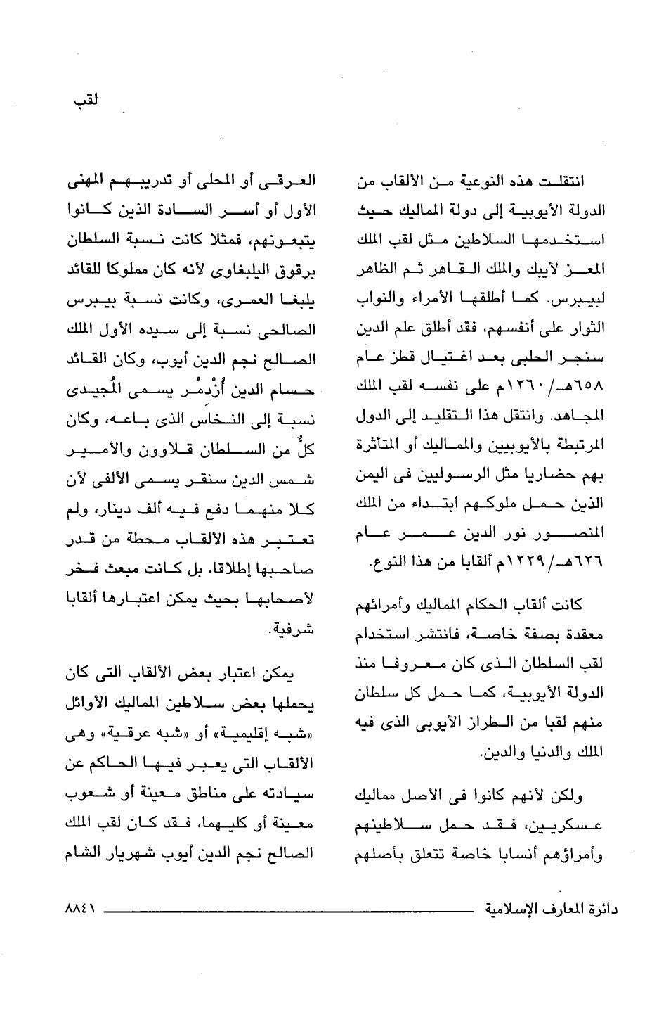 انتقلت هذه النوعية من الألقاب من الدولة الأيوبية إلى دولة المماليك حيث استخدمها السلاطين مثل لقب الملك المعز لأيبك والملك القاهر ثم الظاهر لبيبرس. كما أطلقها الأمراء والنواب الثوار على أنفسهم، فقد أطلق علم الدين سنجر الحلبى بعد اغتيال قطز عام 658 هـ/ 1260 م على نفسه لقب الملك المجاهد. وانتقل هذا التقليد إلى الدول المرتبطة بالأيوبيين والمماليك أو المتأثرة بهم حضاريا مثل الرسوليين فى اليمن الذين حمل ملوكهم ابتداء من الملك المنصور نور الدين عمر عام 626 هـ/ 1229 م ألقابا من هذا النوع.