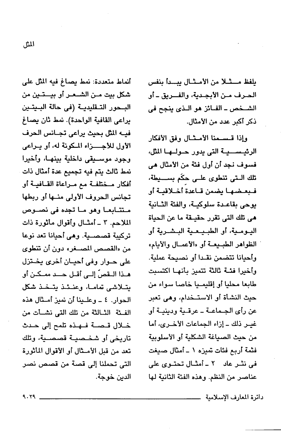 1 - أمثال صيغت فى نثر عاد.