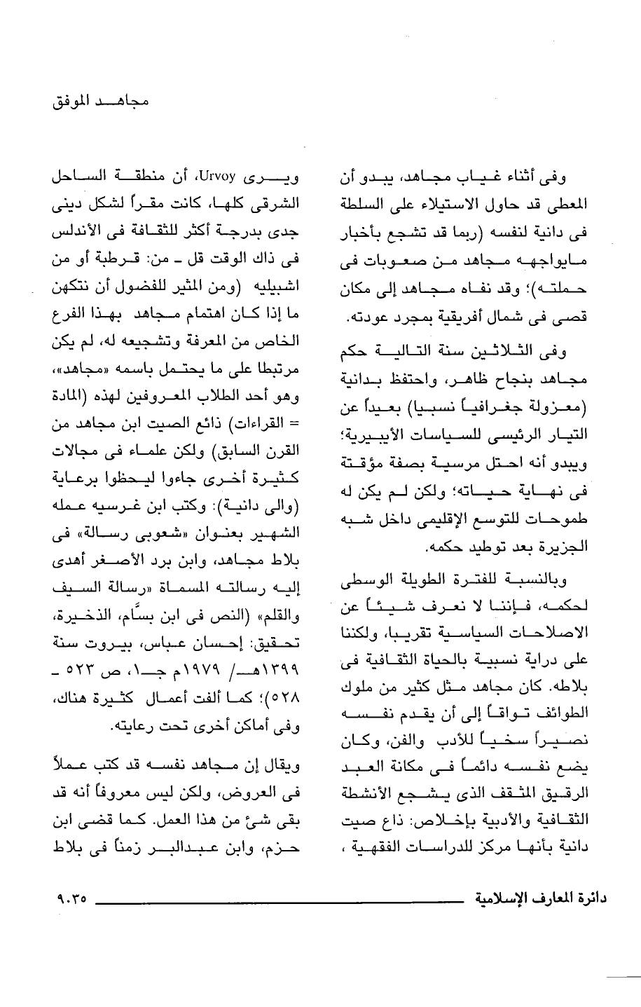 ويقال إن مجاهد نفسه قد كتب عملًا فى العروض، ولكن ليس معروفًا أنه قد بقى شئ من هذا العمل. كما قضى ابن حزم، وابن عبد البر زمنًا فى بلاط