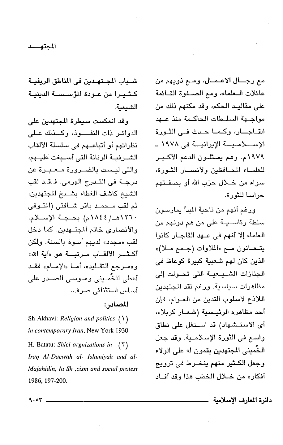(2) H. Batatu: Shici oagnizations in Iraq Al-Dacwah al- Islamiyah and alMajahidin, In Sh, cism and social protest 1986, 197 - 200