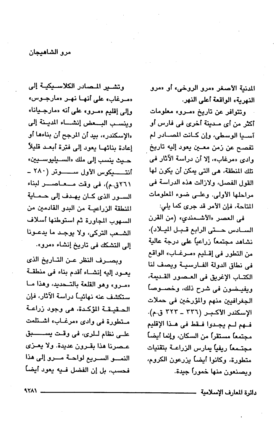 المدنية الأصغر "مرو الروخى" أو "مرو النهرية" الواقعة أعلى النهر.