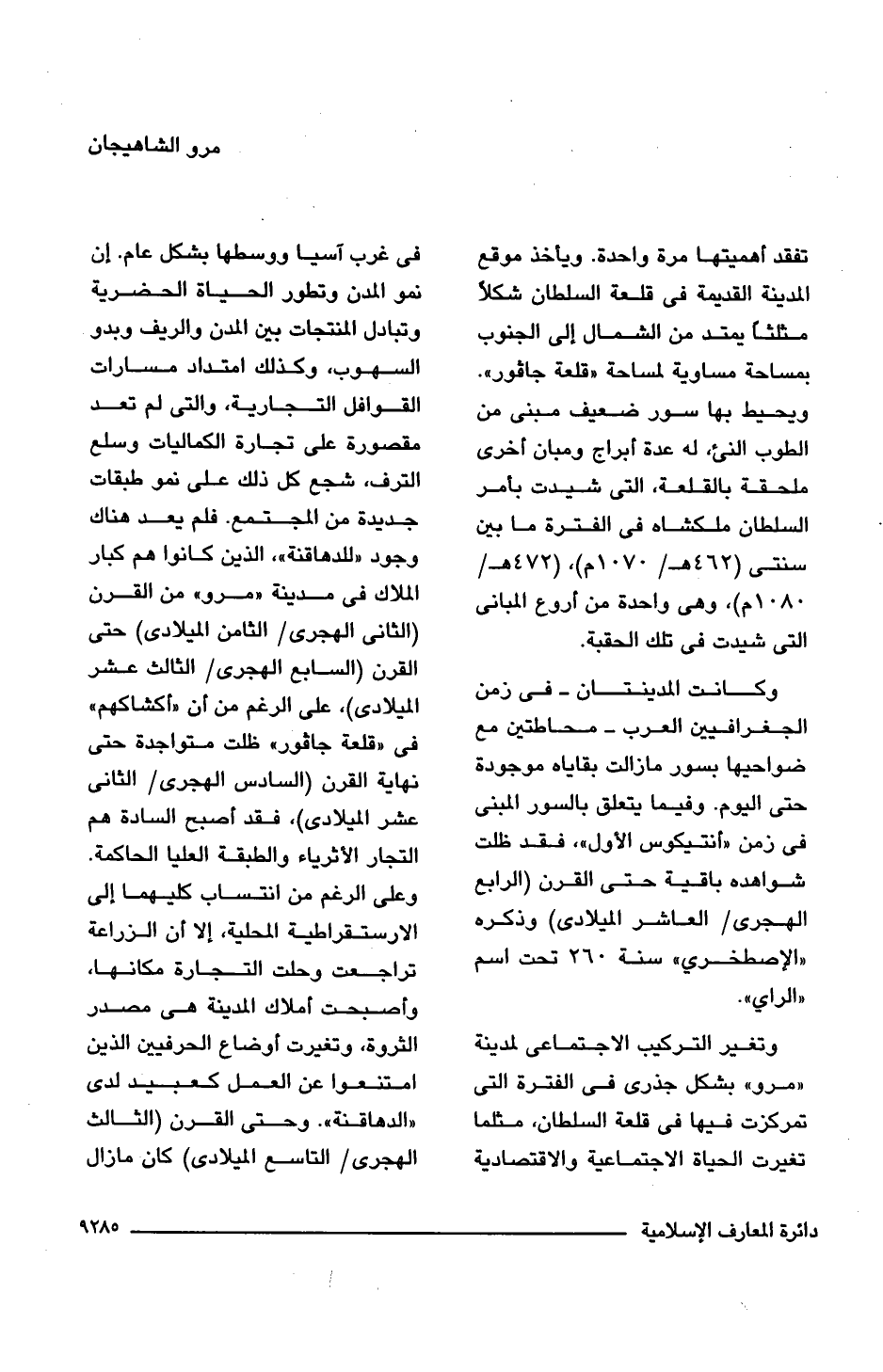 وتغير التركيب الاجتماعى لمدينة "مرو" بشكل جذرى فى الفترة التى تمركزت فيها فى قلعة السلطان, مثلما تغيرت الحياة الاجتماعية والاقتصادية فى غرب آسيا ووسطها بشكل عام. إن نمو المدن وتطور الحياة الحضرية وتبادل المنتجات بين المدن والريف وبدو السهوب، وكذلك امتداد مسارات القوافل التجارية، والتى لم تعد مقصورة على تجارة الكماليات وسلع الترف، شجع كل ذلك على نمو طبقات جديدة من المجتمع. فلم يعد هناك وجود "للدهاقنة"، الذين كانوا هم كبار الملاك فى مدينة "مرو" من القرن (الثانى الهجرى/ الثامن الميلادى) حتى القرن (السابع الهجرى/ الثالث عشر الميلادى)، على الرغم من أن "أكشاكهم" فى "قلعة جافور" ظلت متواجدة حتى نهاية القرن (السادس الهجرى/ الثانى عشر الميلادى)، فقد أصبح السادة هم التجار الأثرياء والطبقة العليا الحاكمة. وعلى الرغم من انتساب كليهما إلى الارستقراطية المحلية، إلا أن الزراعة تراجعت وحلت التجارة مكانها، وأصبحت أملاك المدينة هى مصدر الثروة، وتغيرت أوضاع الحرفيين الذين امتنعوا عن العمل كعبيد لدى "الدهاقنة". وحتى القرن (الثالث الهجرى/ التاسع الميلادى) كان ما زال