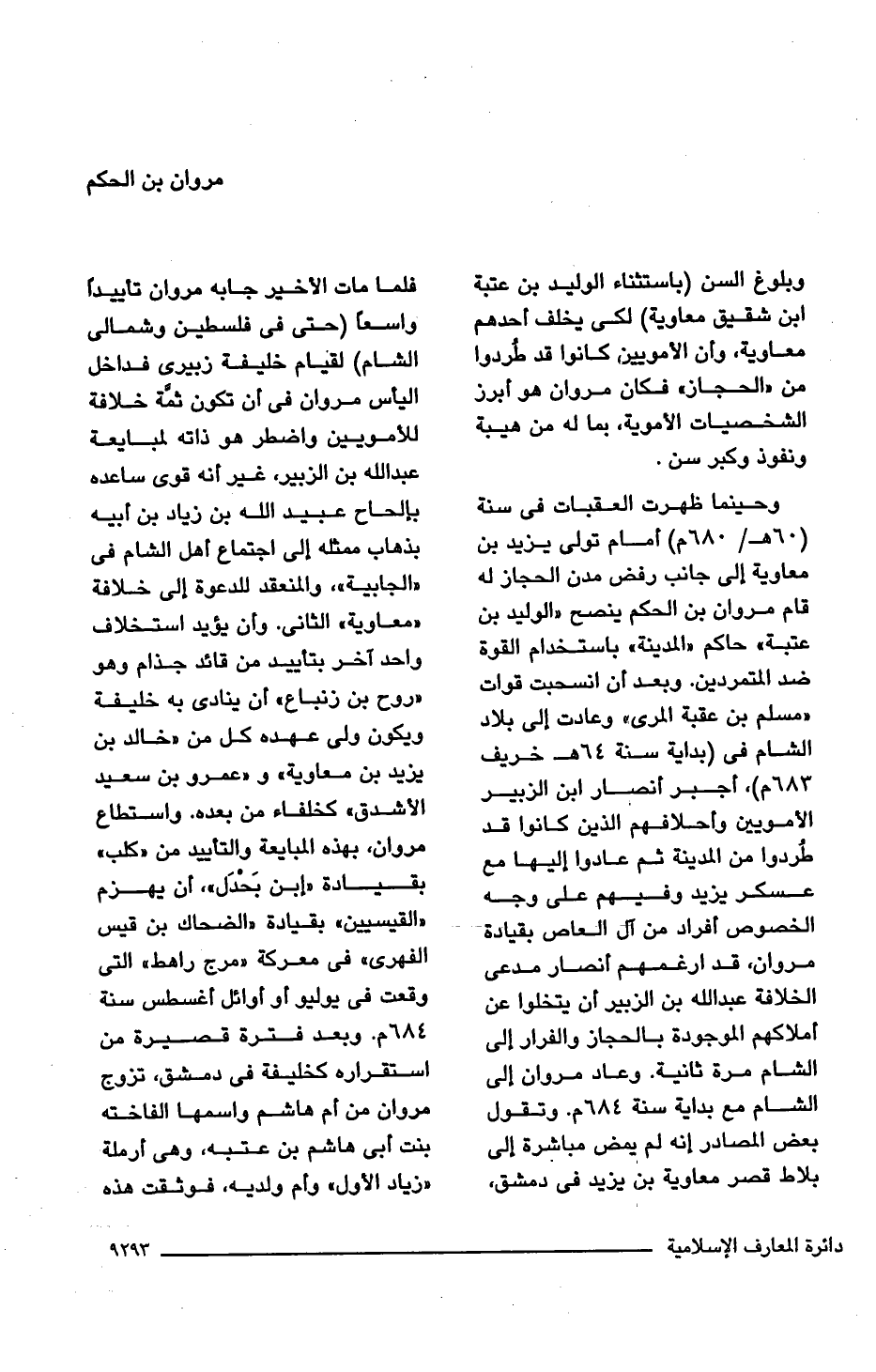 وبلوغ السن (باستثناء الوليد بن عتبة ابن شقيق معاوية) لكى يخلف أحدهم معاوية، وأن الأمويين كانوا قد طُردوا من "الحجاز" فكان مروان هو أبرز الشخصيات الأموية، بما له من هيبة ونفوذ وكبر سن.