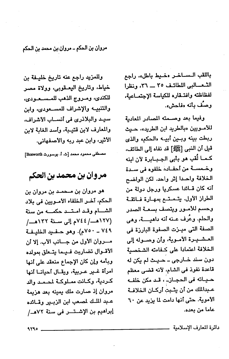 هو مروان بن محمد بن مروان بن الحكم، آخر الخلفاء الأمويين فى بلاد الشام وقد امتد حكمه من سنة (127 هـ/ 744 م إلى سنة 132 هـ/ 749 - 750 م). وهو حفيد الخليفة مروان الأول من جانب الأب. إلا أن الأقوال تضاربت فيما يتعلق بمولده وبأمه وإن كان الإجماع منعقد على أنها امرأة غير عربية، ويقال أحيانا أنها كردية، وكانت مملوكة لمحمد والد مروان إذ صارت ملك يمينه بعد هزيمة عبد الملك لمصعب ابن الزبير وقائده إبراهيم بن الاشتر فى سنة 72 هـ/