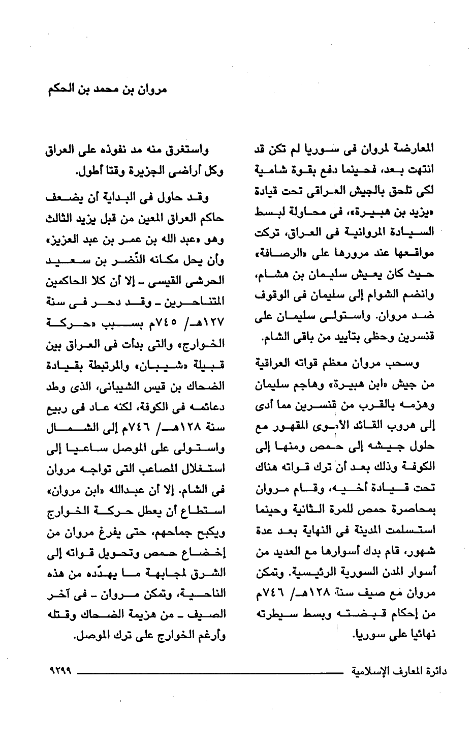 وسحب مروان معظم قواته العراقية من جيش "ابن هبيرة" وهاجم سليمان وهزمه بالقرب من قنسرين مما أدى إلى هروب القائد الأموى المقهور مع حلول جيشه إلى حمص ومنها إلى الكوفة وذلك بعد أن ترك قواته هناك تحت قيادة أخيه، وقام مروان بمحاصرة حمص للمرة الثانية وحينما استسلمت المدينة فى النهاية بعد عدة شهور، قام بدك أسوارها مع العديد من أسوار المدن السورية الرئيسية. وتمكن مروان مع صيف سنة 128 هـ/ 746 م من إحكام قبضته وبسط سيطرته نهائيا على سوريا. واستغرق منه مد نفوذه على العراق وكل أراضى الجزيرة وقتا أطول.